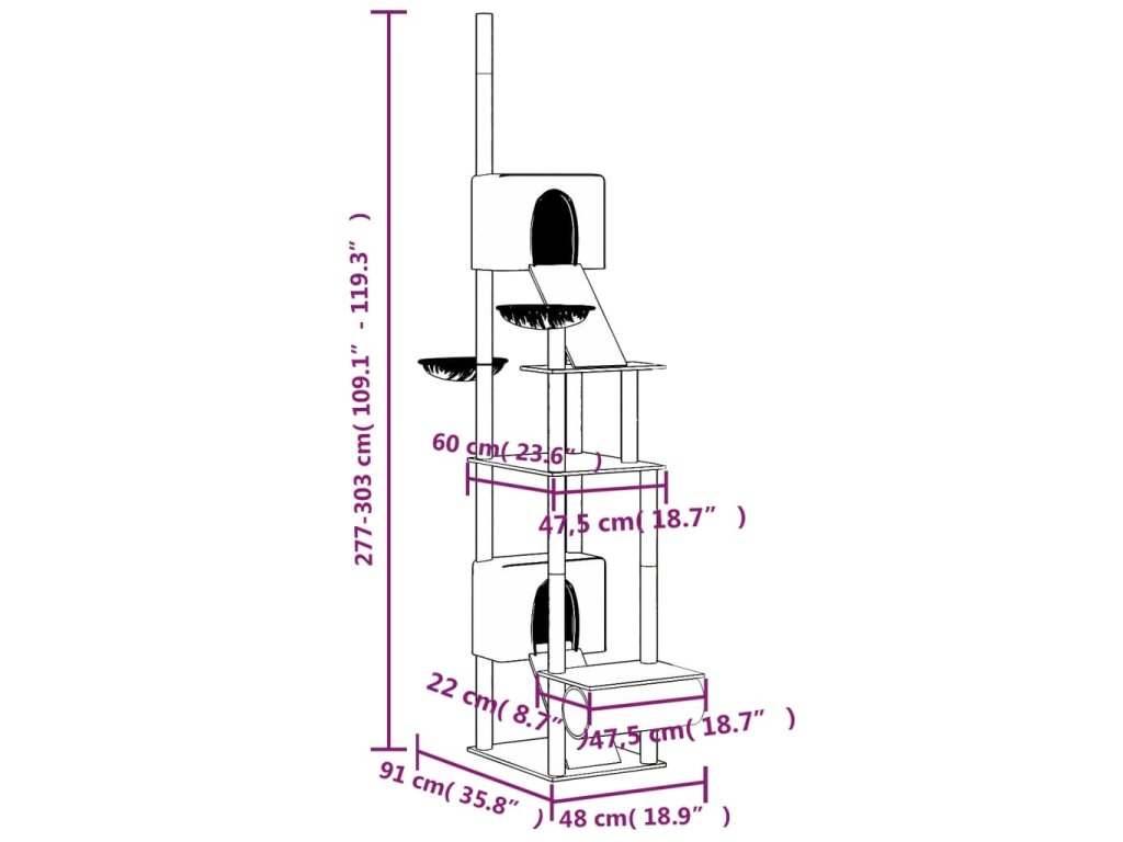 - Komplexná veža pre mačky: Viacúrovňový nábytok pre mačky je navrhnutý s 2 domčekmi, 2 sieťami, 2 rebríkmi a 1 tunelom a plošinami, ktoré vašim mačkám poskytujú dokonalé miesto, kde môžu liezť, sedieť, škrabať sa, schovávať sa a tiež relaxovať.
