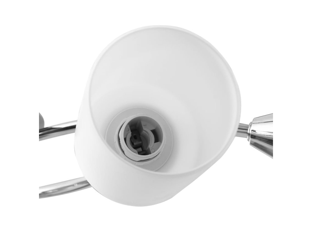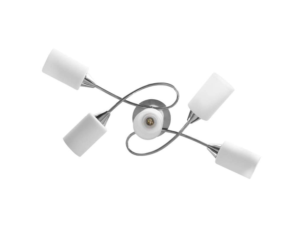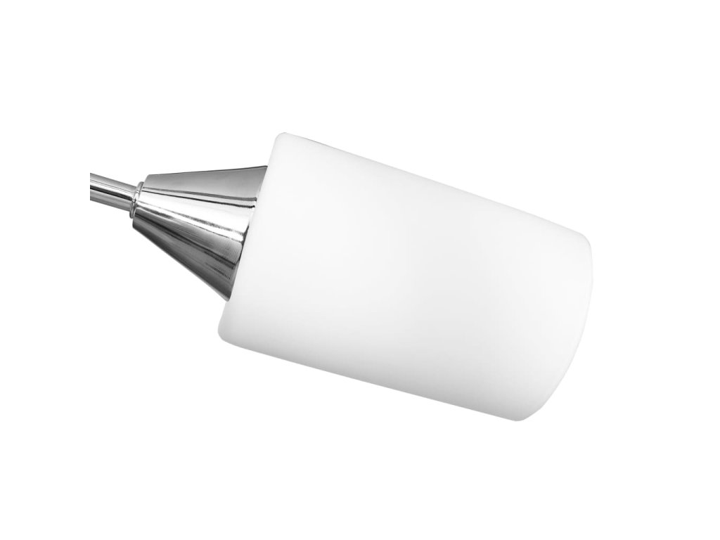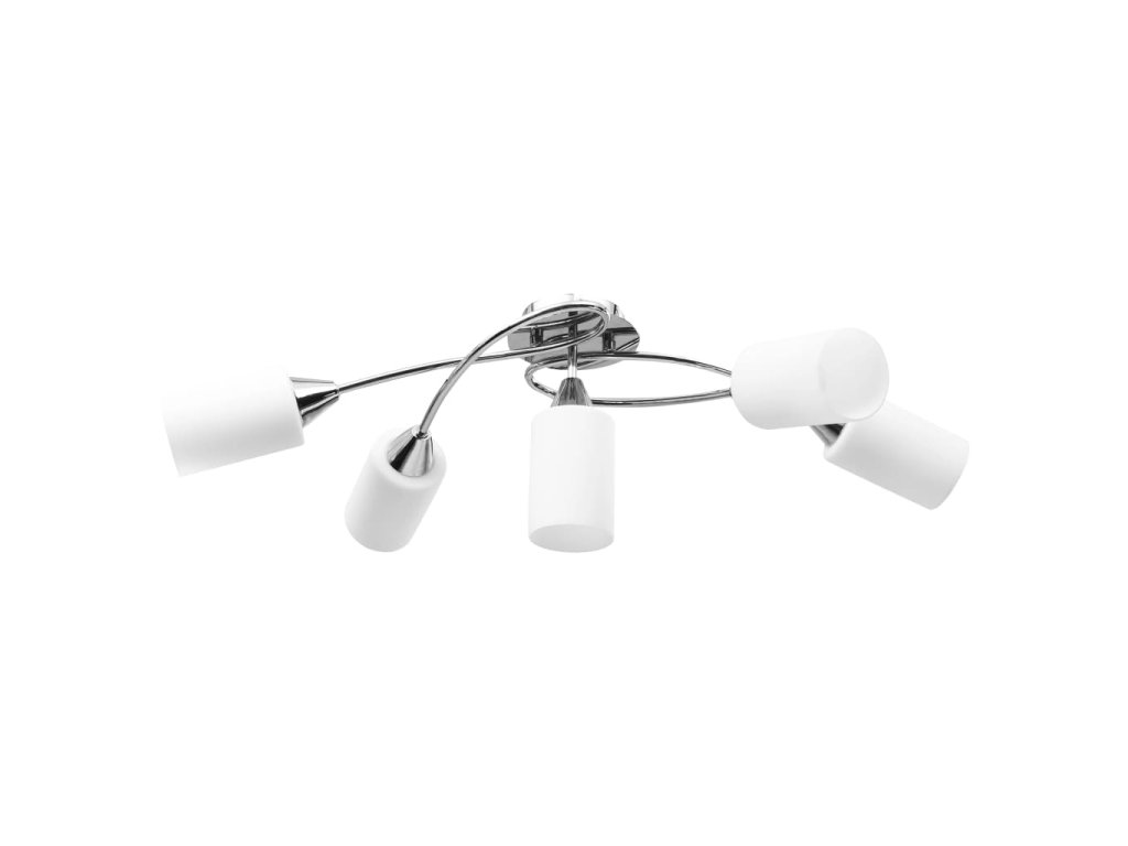 Táto lampa sa dá jednoducho pripevniť na akýkoľvek strop pomocou odolnej kovovej základne. Elegantný vzhľad dotvára päť zamotaných pochrómovaných oceľových rúrok a kužeľové tienidlá. Saténový pochrómovaný povrch dodáva lampe moderný štýl, vďaka čomu je ideálna do obývačky alebo spálne zariadenej v rôznych štýloch. Okrem toho sa ľahko udržiava a čistí vlhkou handričkou.