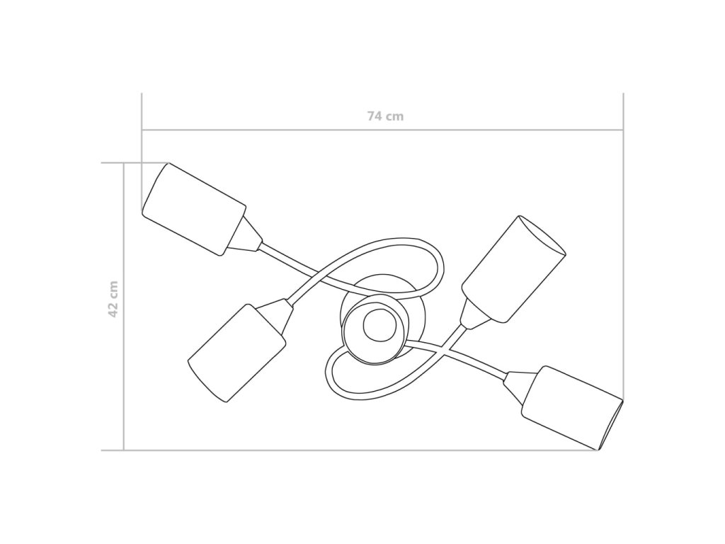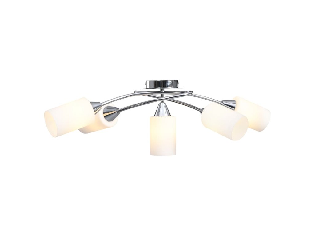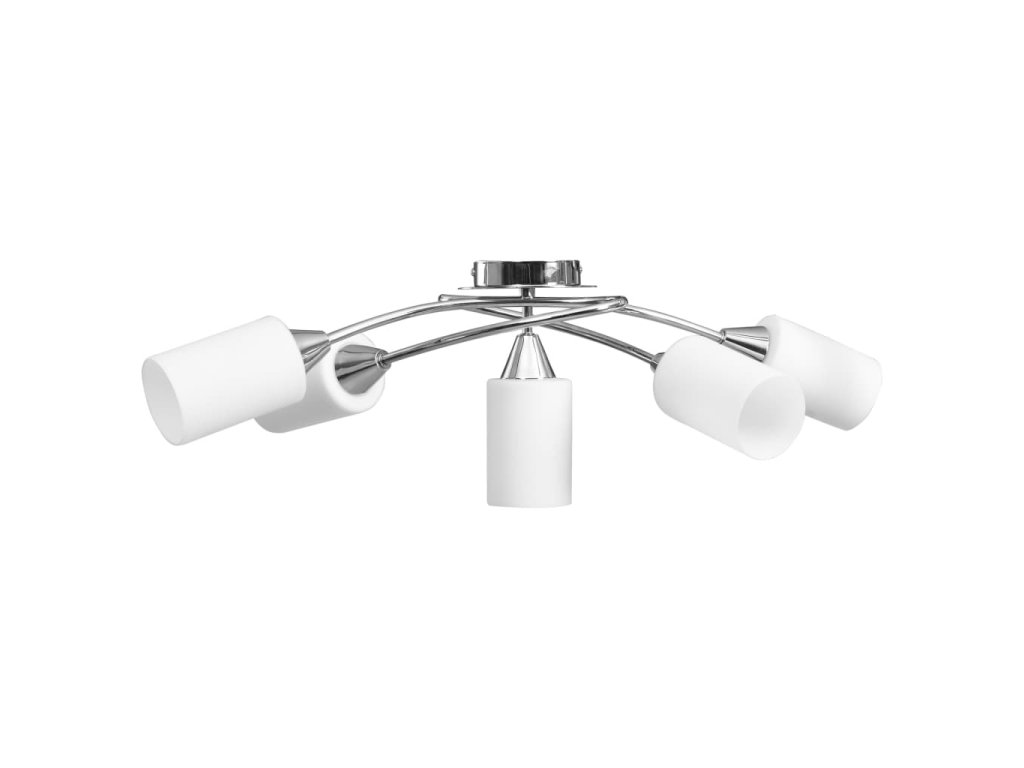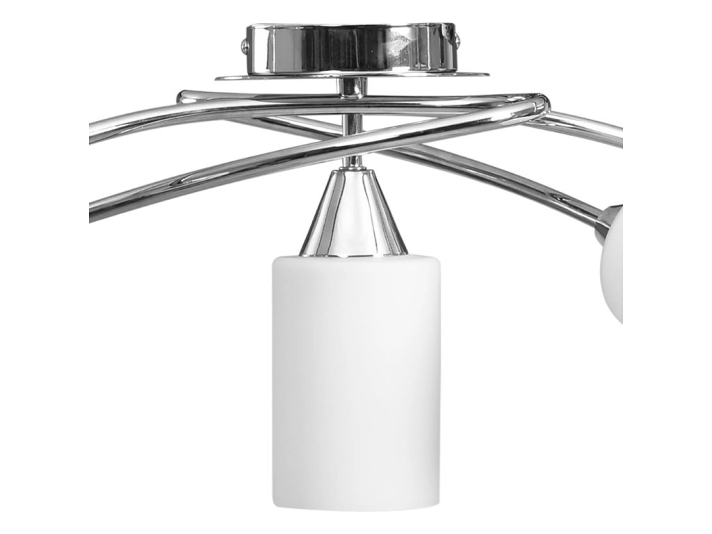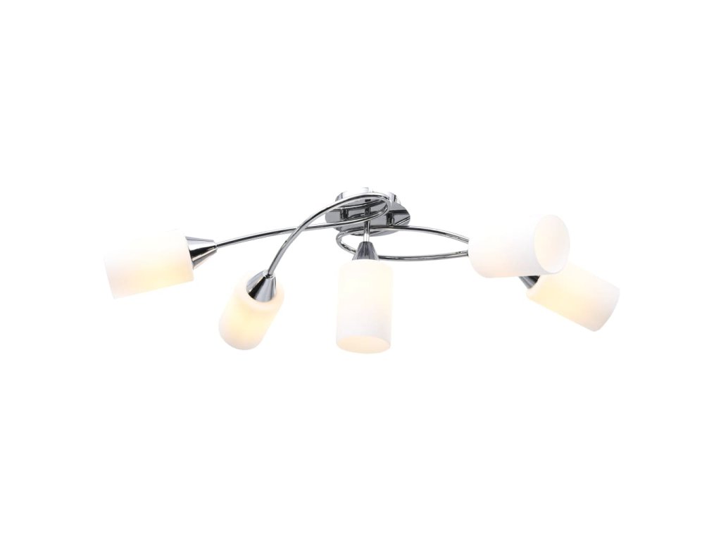 Táto lampa sa dá jednoducho pripevniť na akýkoľvek strop pomocou odolnej kovovej základne. Elegantný vzhľad dotvára päť zamotaných pochrómovaných oceľových rúrok a kužeľové tienidlá. Saténový pochrómovaný povrch dodáva lampe moderný štýl, vďaka čomu je ideálna do obývačky alebo spálne zariadenej v rôznych štýloch. Okrem toho sa ľahko udržiava a čistí vlhkou handričkou.