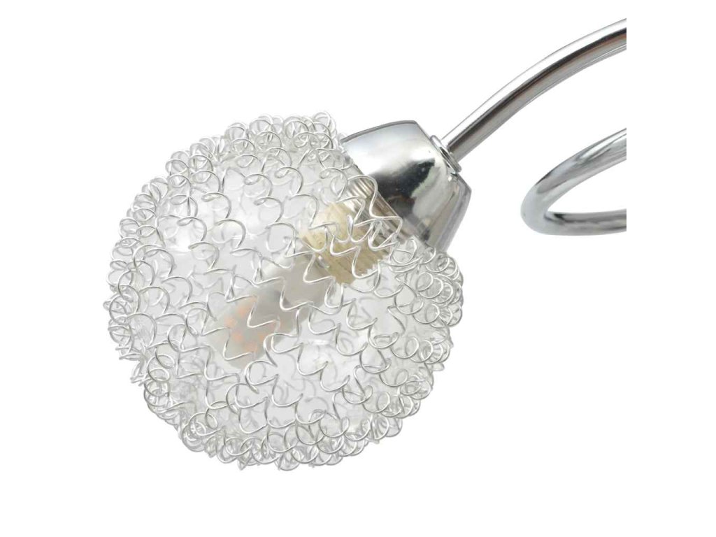 LED lampa sa dá vďaka vysokokvalitnej kovovej základni ľahko namontovať na akýkoľvek strop. Špirálovité kovové ramená jej dodávajú štýlový vzhľad. Cez jemné sklenené tienidlá bude prenikať príjemné teplé svetlo, ktoré osvetlí každý kút miestnosti. Lesklý sieťkovaný drôt, ktorý zdobí tienidlá, odráža svetlo, a tak sa miestnosť bude zdať svetlejšia. Táto jedinečná stropná lampa bude vyzerať skvele v akejkoľvek miestnosti domu.