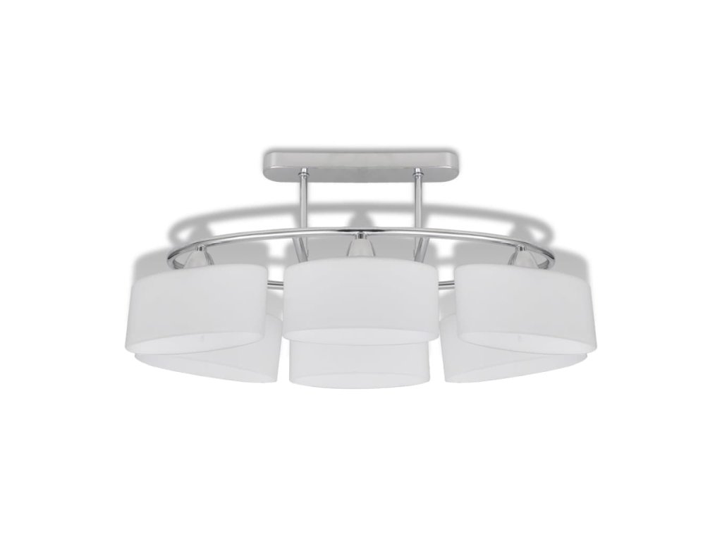Táto jedinečná stropná lampa so šiestimi sklenenými tienidlami predstavuje moderný dizajn. Chrómová povrchová úprava dodáva tomuto svietidlu moderný štýl – ideálna do obývačky alebo spálne v akomkoľvek štýle.