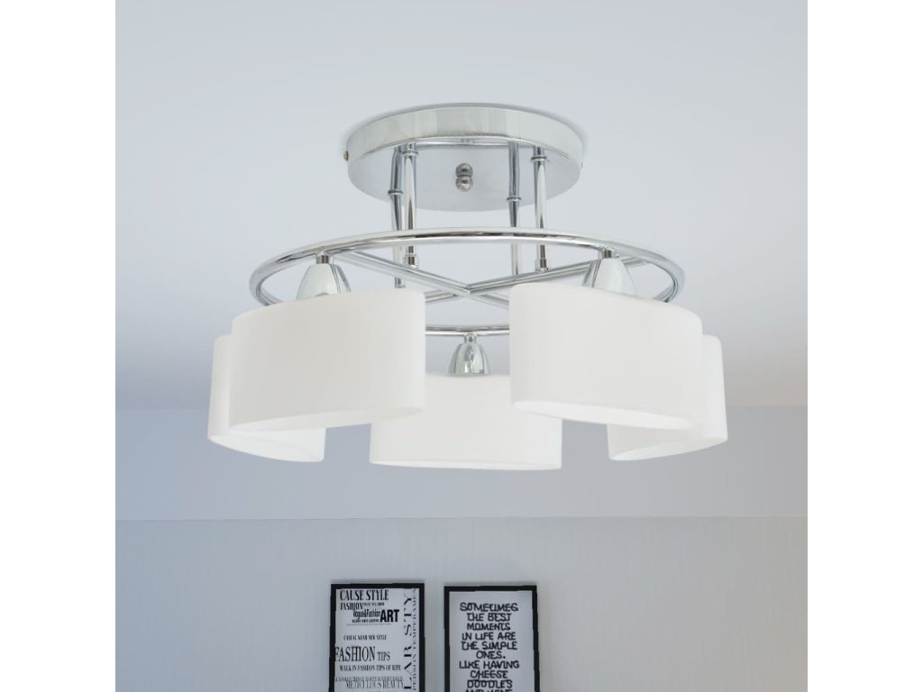 Táto jedinečná stropná lampa s piatimi sklenenými tienidlami má moderný dizajn, ktorý sa bude hodiť do akejkoľvek obývacej izby alebo spálne.