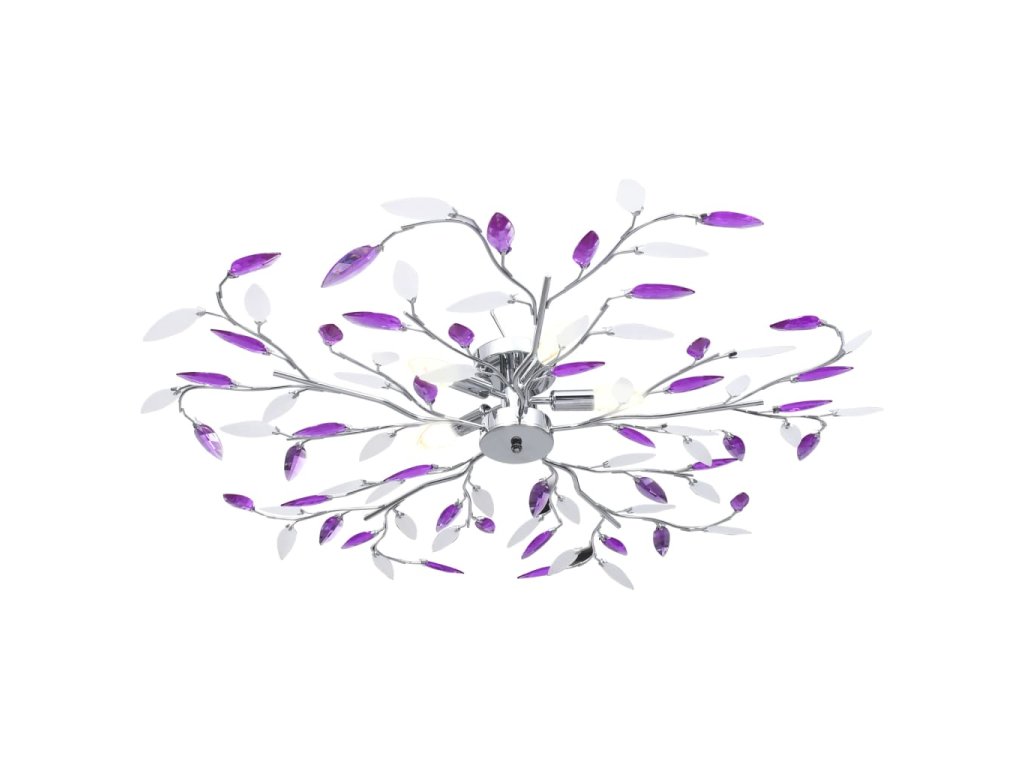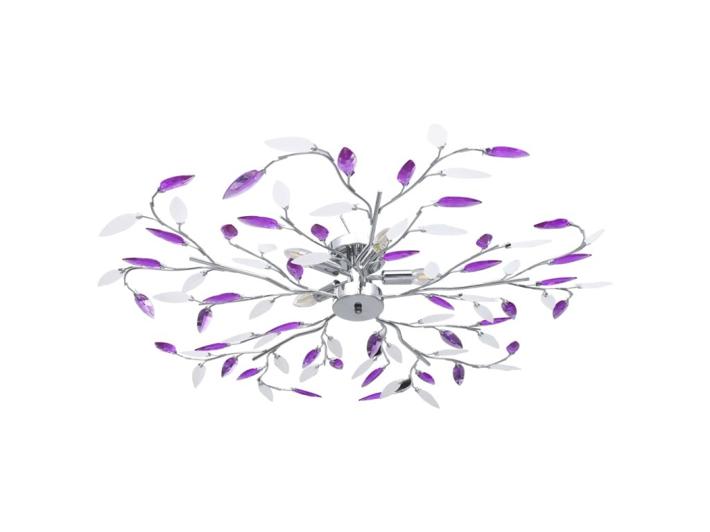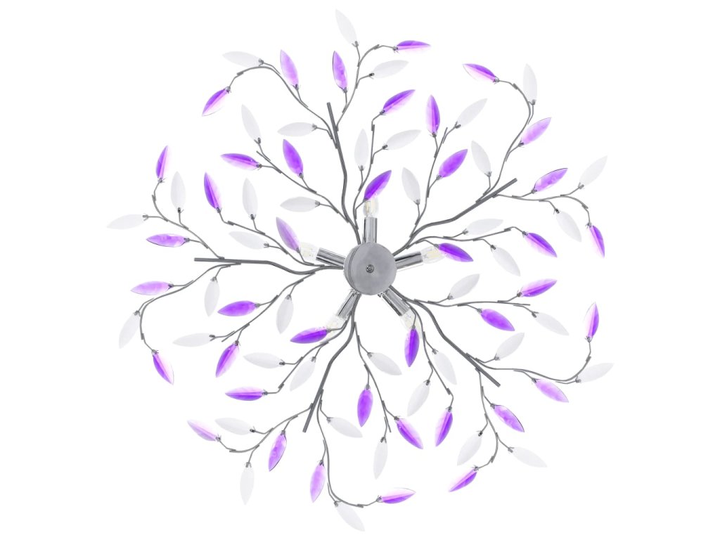 vidaXL Stropná lampa s listovými ramenami akrylové kryštály 5 žiaroviek E14 fialová