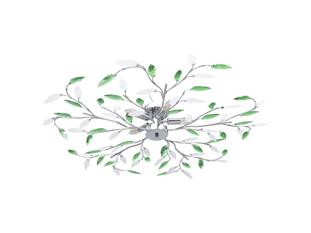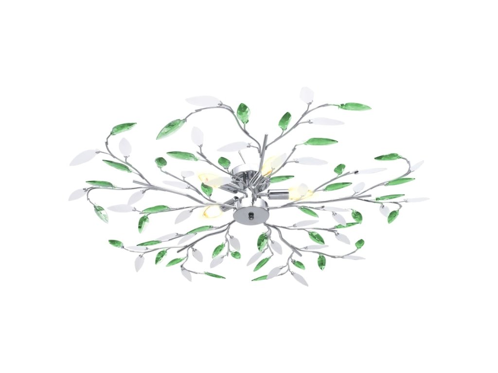 vidaXL Stropná lampa s listovými ramenami z akrylové kryštály 5 žiaroviek E14 zelená