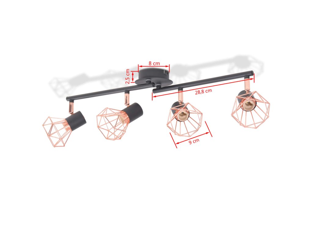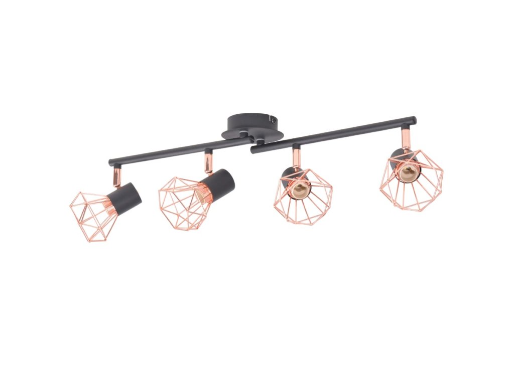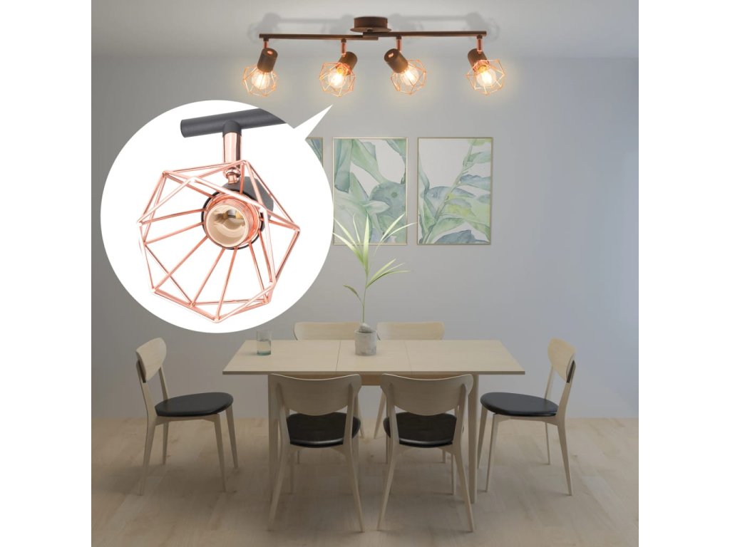 Svietidlo sa dá ľahko namontovať na stenu alebo strop vďaka kvalitnej čiernej kovovej základni. Jedinečné železné drôty v medených farebných odtieňoch na bodových svetlách dodávajú svietidlu priemyselný štýl a vytvárajú príjemný efekt, keďže svetlo prechádza cez ne a osvetľuje každý kútik miestnosti.