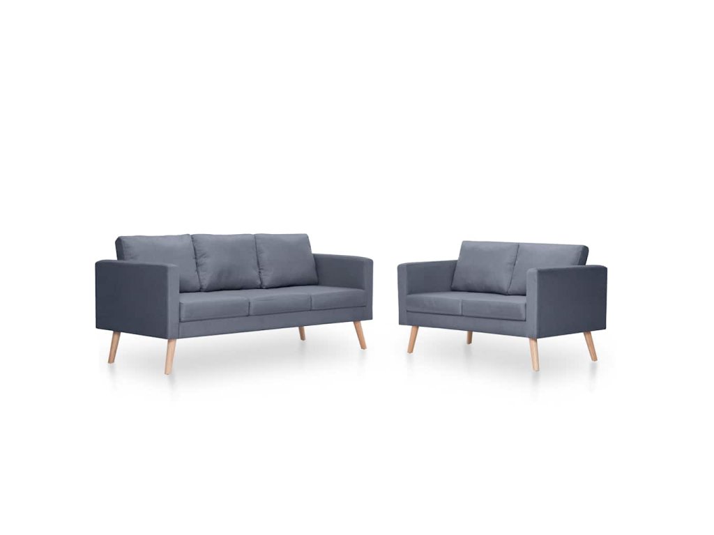 Dve pohovky poskytujú množstvo priestoru na sedenie a husto čalúnené podložky zaručujú optimálny komfort. Sú potiahnuté látkou prvotriednej kvality, ktorá vydrží naozaj dlho. Poťahy podložiek sa dajú ľahko očistiť, pretože ich môžete jednoducho zvliecť a oprať v práčke. Pevný drevený rám dodáva sedačkám dostatočnú stabilitu.