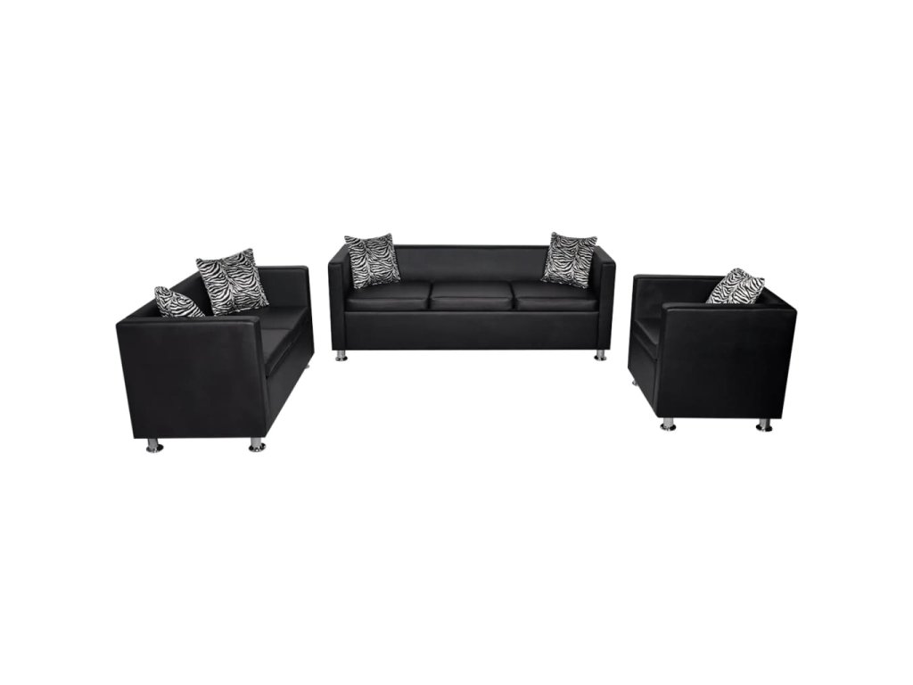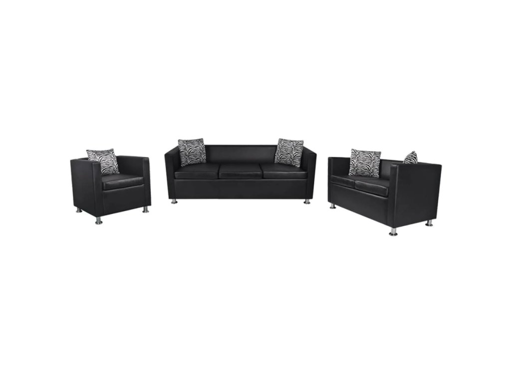 Táto súprava pohoviek pozostáva z trojmiestnej a dvojmiestnej pohovky a kresla v tvare kocky, je vyrobená z kvalitnej umelej kože a je veľmi pohodlná. Jej úhľadný, moderný dizajn vnesie do vášho interiéru nádych štýlu.