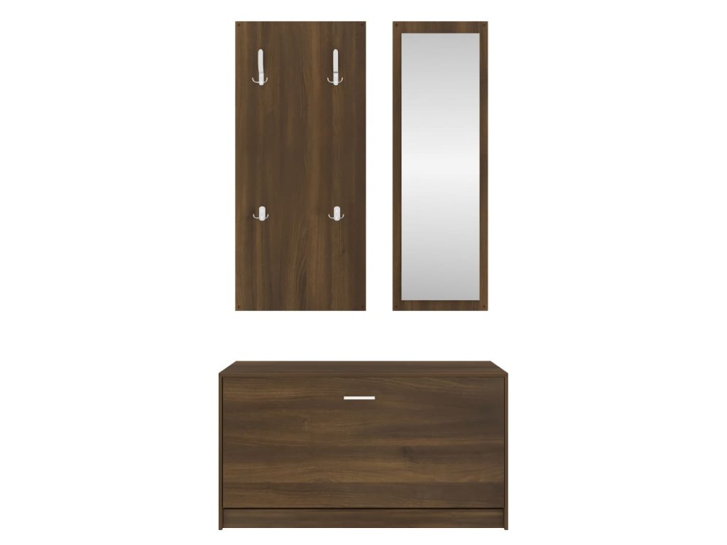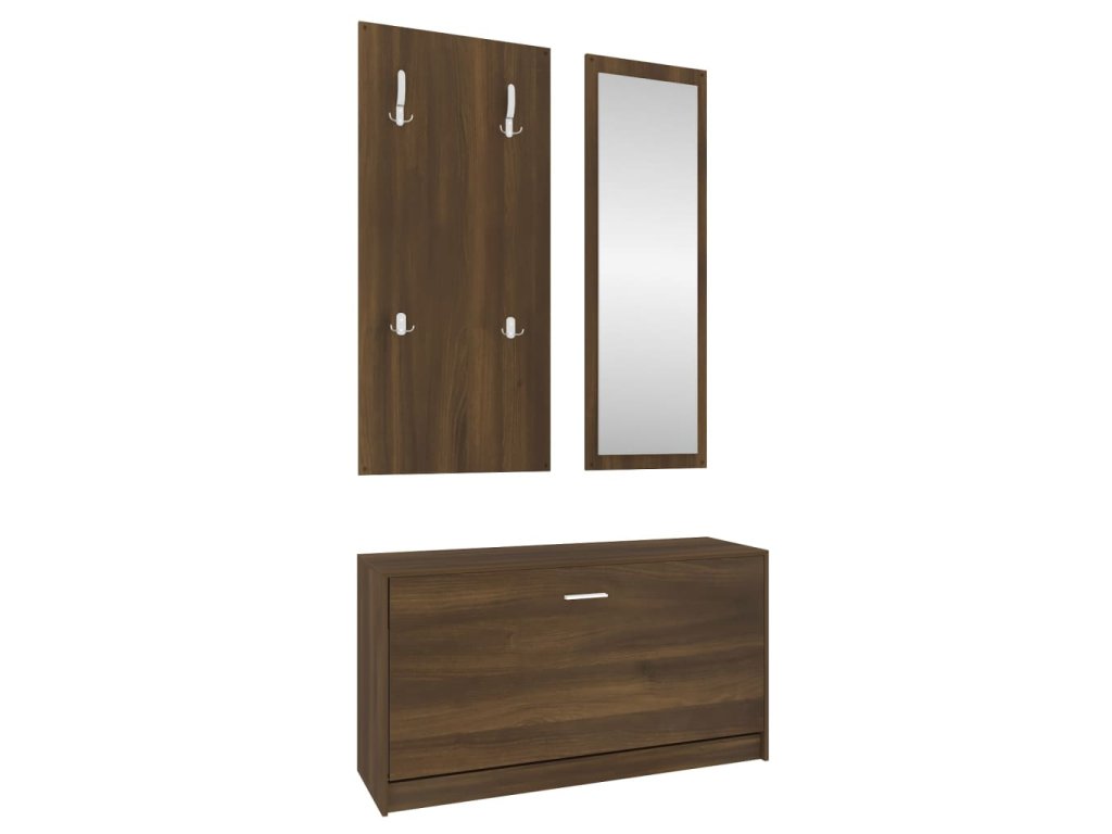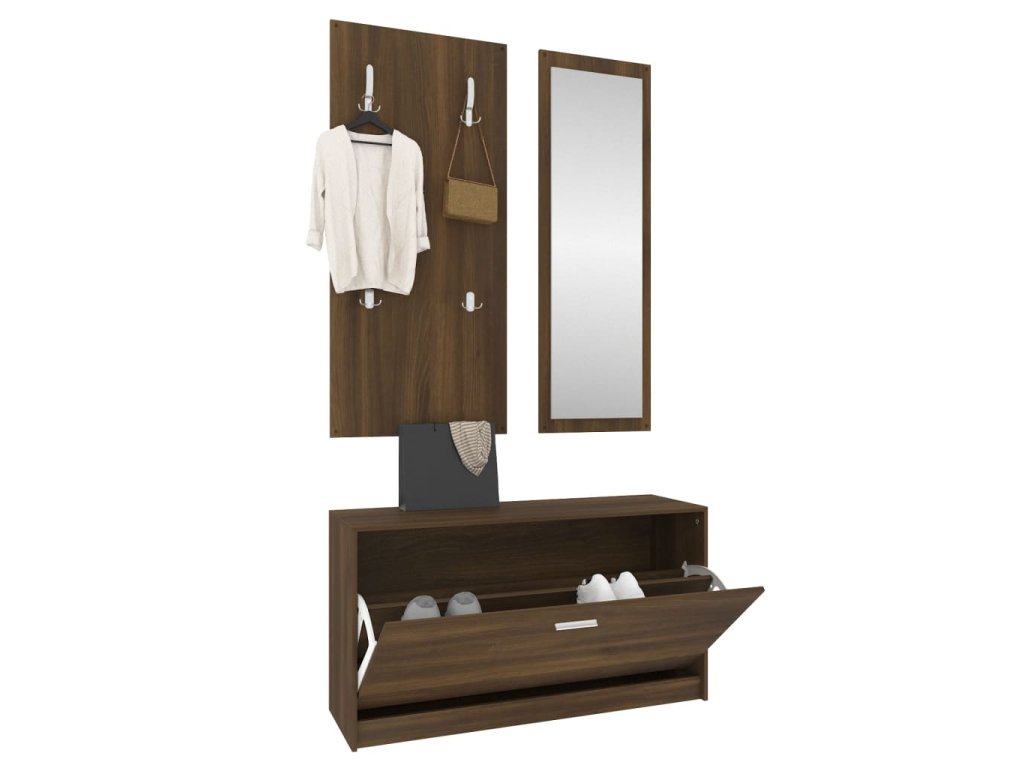 Táto súprava skrinky na topánky 3 v 1 pozostáva zo štýlovej skrinky na topánky, nástenného zrkadla a vešiaka, a ponúka nespočetné množstvo úložných riešení.