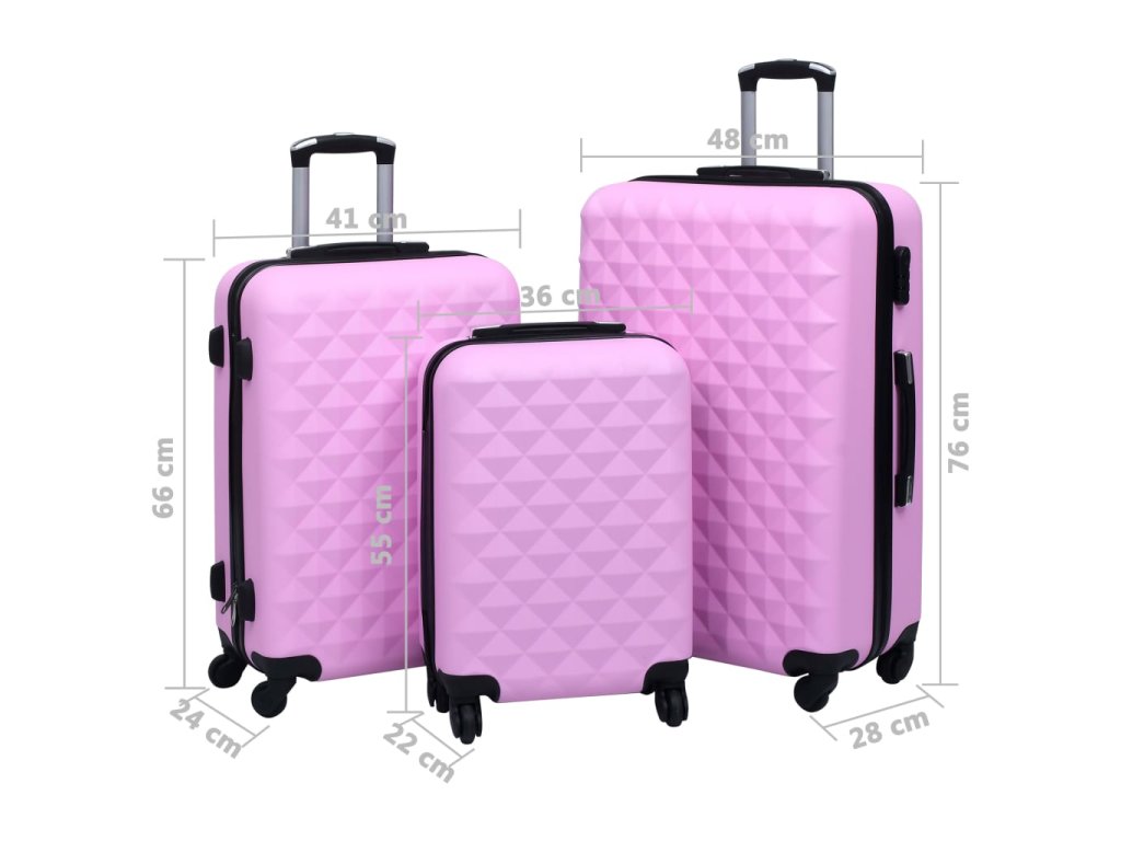 Táto súprava kufrov má pevné a odolné kryty z ABS a bezpečnostné zámky, aby bola vaša batožina v bezpečí. Vnútorné napínacie popruhy zaručujú, že vaše položky budú úhľadne usporiadané a ostanú na svojom mieste. Každý kufor je vybavený hornou rukoväťou na prenášanie a štyrmi plne otáčacími kolieskami, ktoré zaručia pohodlný cestovný zážitok. Táto sada kufrov je navyše veľmi odolná a ľahká, vďaka čomu bude skvelým spoločníkom na každej ceste.