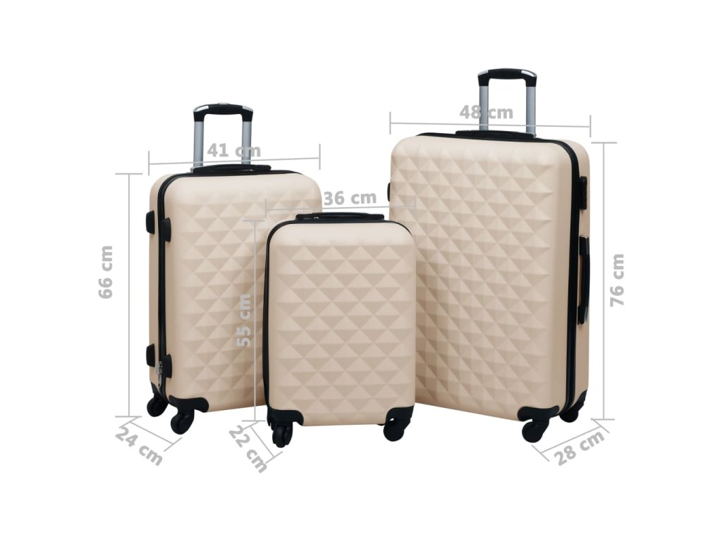 Táto súprava kufrov má pevné a odolné kryty z ABS a bezpečnostné zámky, aby bola vaša batožina v bezpečí. Vnútorné napínacie popruhy zaručujú, že vaše položky budú úhľadne usporiadané a ostanú na svojom mieste. Každý kufor je vybavený hornou rukoväťou na prenášanie a štyrmi plne otáčacími kolieskami, ktoré zaručia pohodlný cestovný zážitok. Táto sada kufrov je navyše veľmi odolná a ľahká, vďaka čomu bude skvelým spoločníkom na každej ceste.