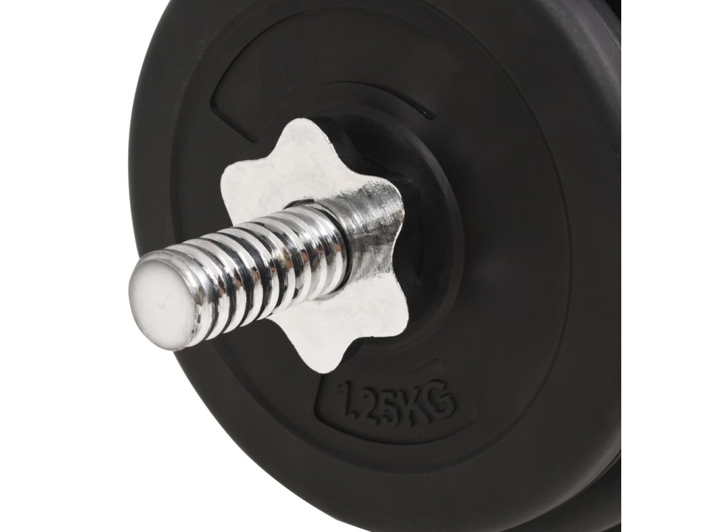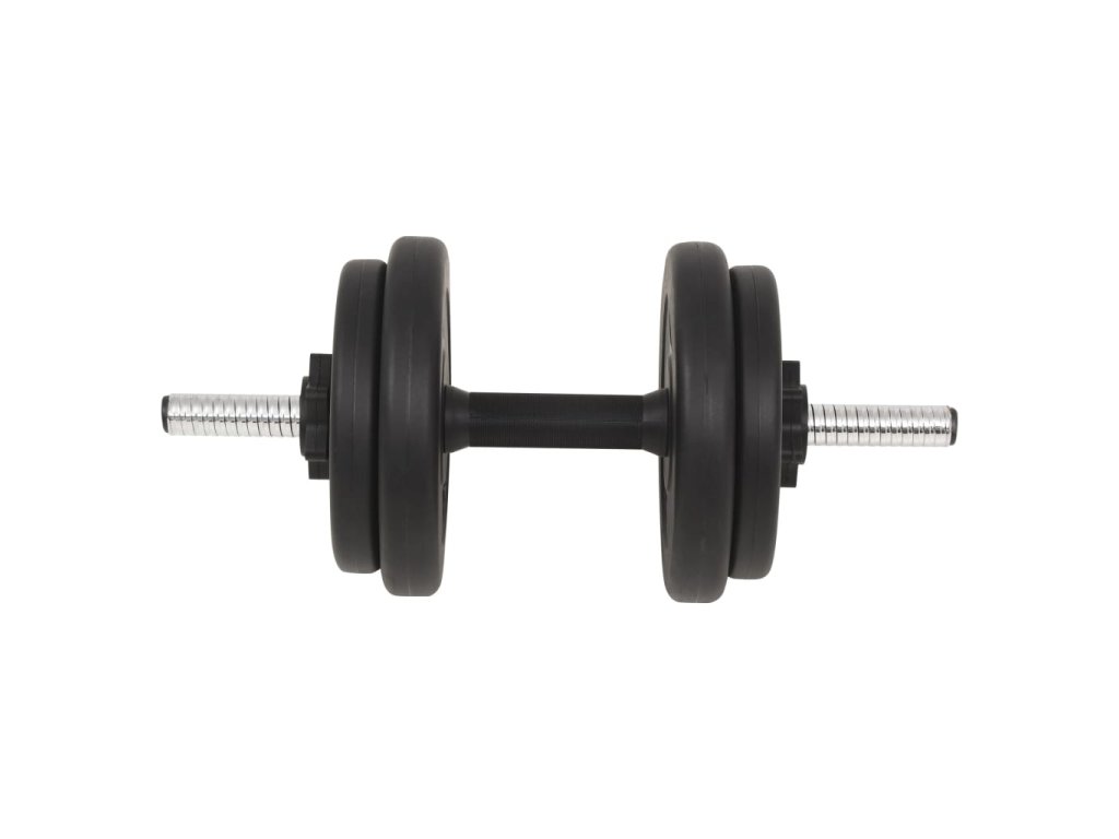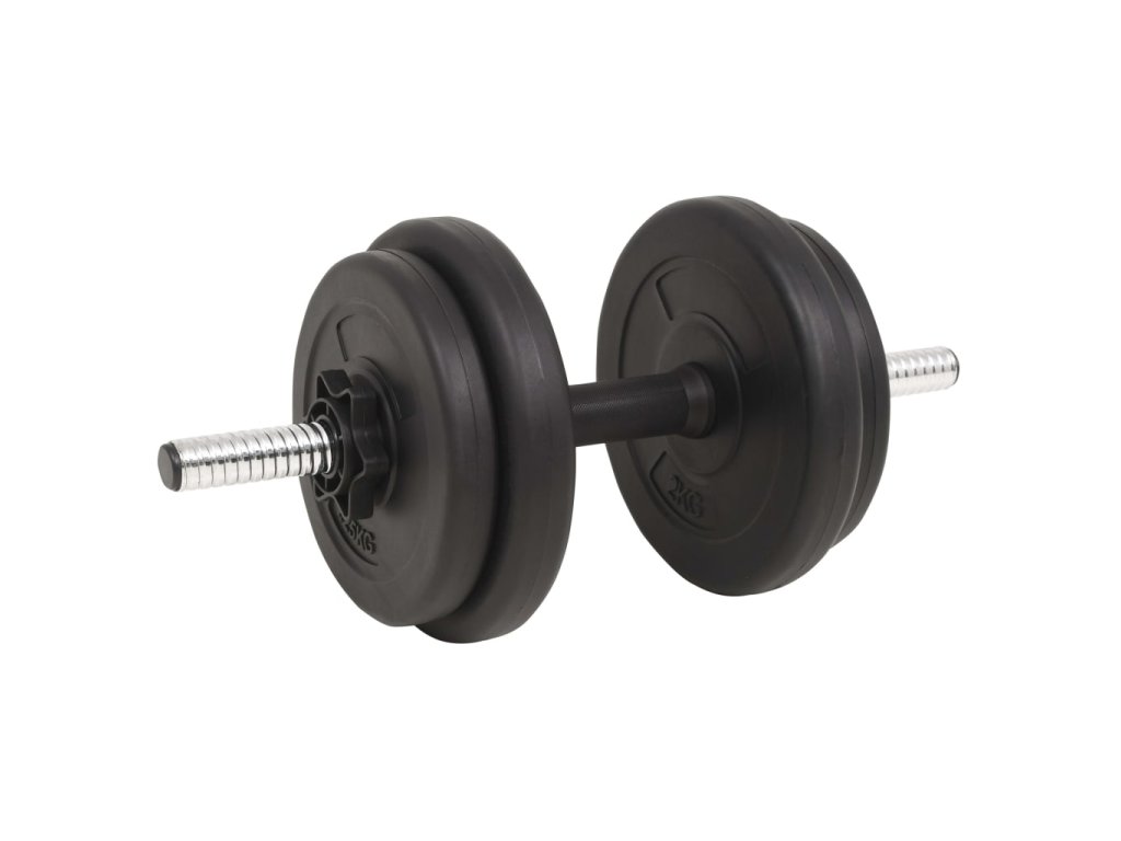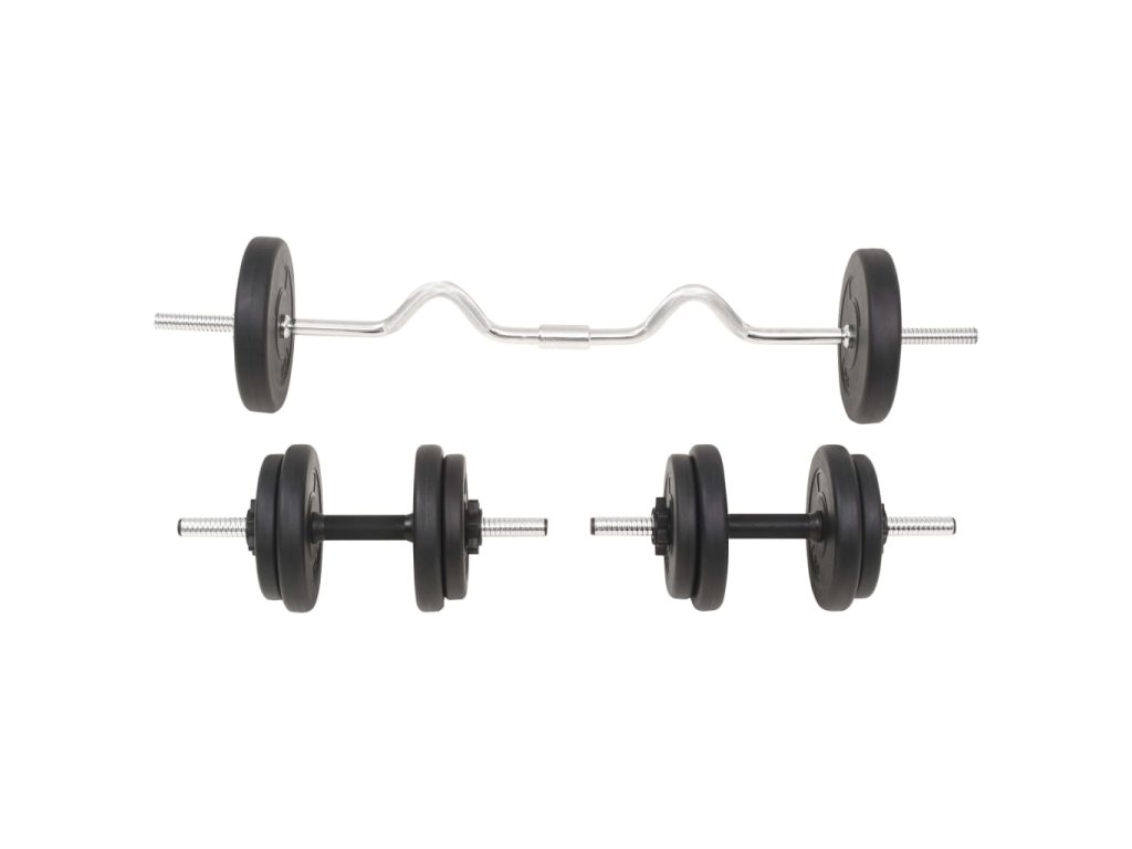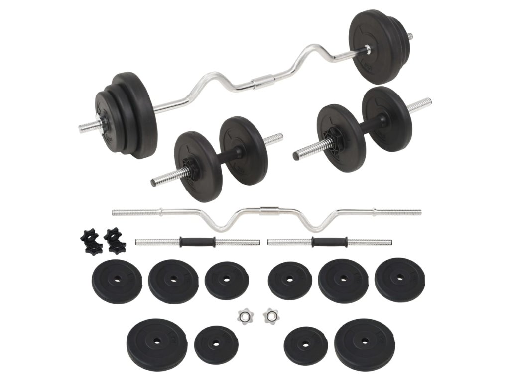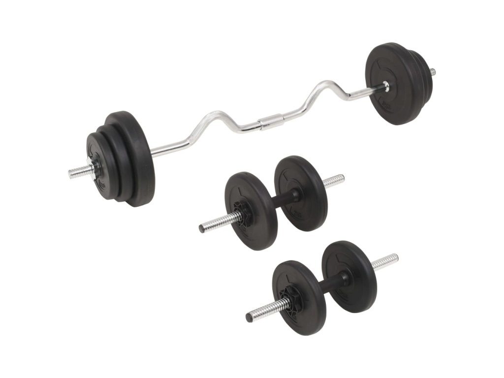 Táto všestranná súprava činiek barbell a dumbbell je ideálna na precvičovanie hrudníka, bicepsov, ramien, tricepsov a chrbtových svalov. Súprava obsahuje dve závažia s hmotnosťou 5 kg, štyri závažia s hmotnosťou 2 kg, štyri závažia s hmotnosťou 1,25 kg, jednu tyč na činku barbell a dve tyče na činku dumbbell. Celková hmotnosť súpravy je približne 30 kg.