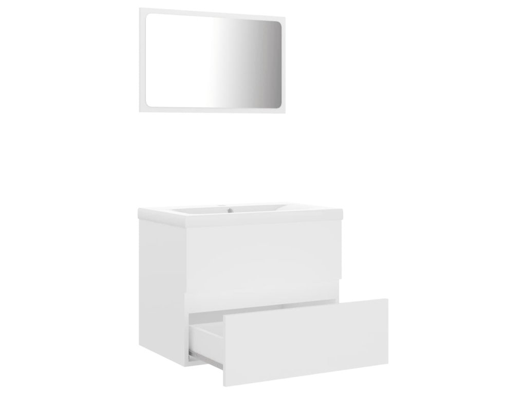 Skrinka pod umývadlo je vyrobená z kompozitného dreva, vďaka čomu je robustná a stabilná. Skrinka má 1 zásuvku, ktorá poskytuje množstvo priestoru na odkladanie vecí v kúpeľni. Skvele sa hodí pod umývadlo a umožňuje pohodlné skladovanie vecí v kúpeľni. Umývadlo je vyrobené z keramiky a poslúži nielen ako praktický prostriedok na každodenné použitie, ale aj ako ozdoba vášho príbytku! Vďaka svojmu trendovému a modernému dizajnu sa toto umývadlo bude pekne hodiť do každého interiéru. Umývadlo je vybavené prepadom na odtok vody v prípade naplnenia. Jeho glazovaný povrch prináša moderný a zároveň elegantný dizajn. Zrkadlo vášmu interiéru dodá krásny vzhľad. Súprava nábytku sa navyše dá ľahko očistiť navlhčenou handričkou.