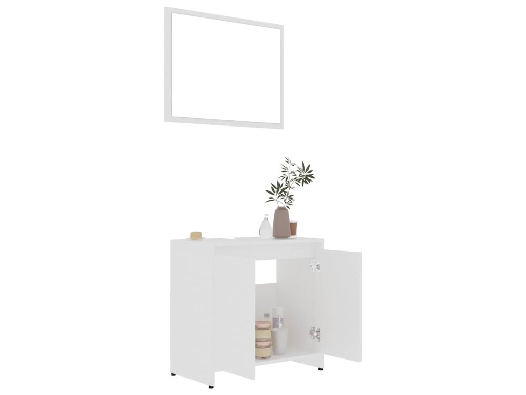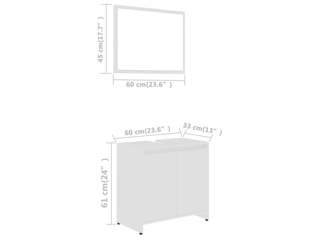 Táto súprava nábytku pozostáva zo zrkadla a skrinky a je vyrobená z trvácneho a stabilného kompozitného dreva. Kúpeľňová skrinka má 1 priečinok a 2 dvierka, a tak poskytuje dostatok priestoru na odkladanie rôznych predmetov v kúpeľni. Zrkadlo vášmu interiéru dodá krásny vzhľad. Súprava sa navyše dá ľahko očistiť navlhčenou handričkou.