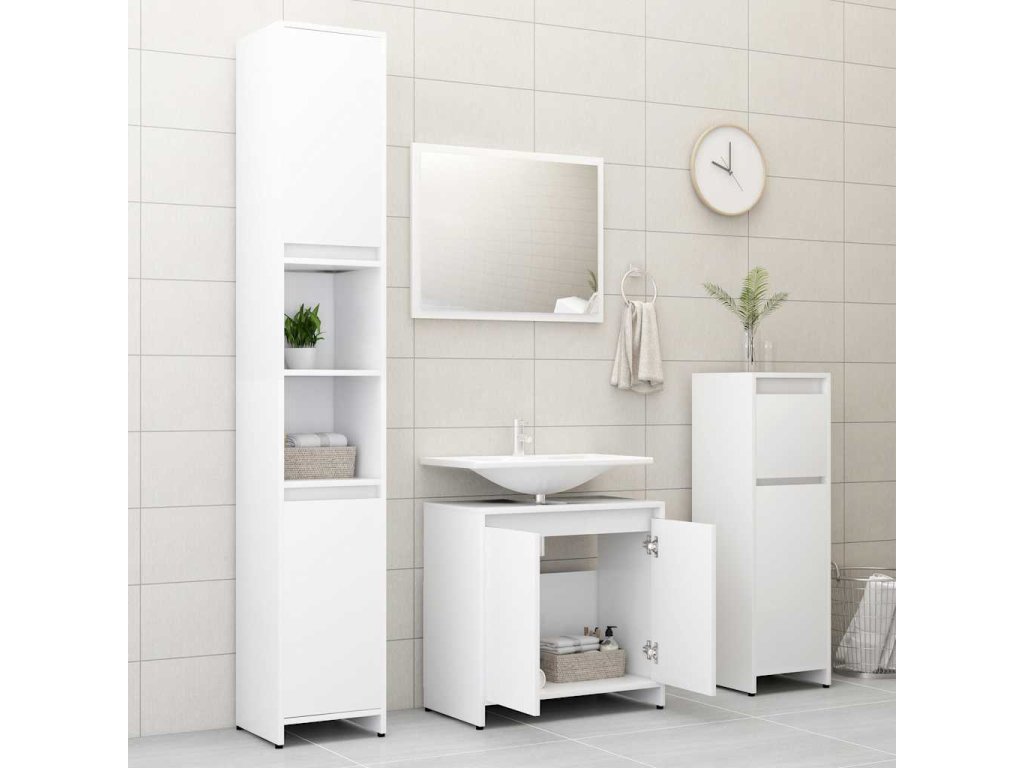 Táto štýlová súprava kúpeľňového nábytku vám umožní vytvoriť si ďalší úložný priestor, a tak bude kúpeľňa pôsobiť pekne a čisto. Vďaka čistým líniám a úhľadnému dizajnu sa bude dokonale hodiť do kúpeľne.