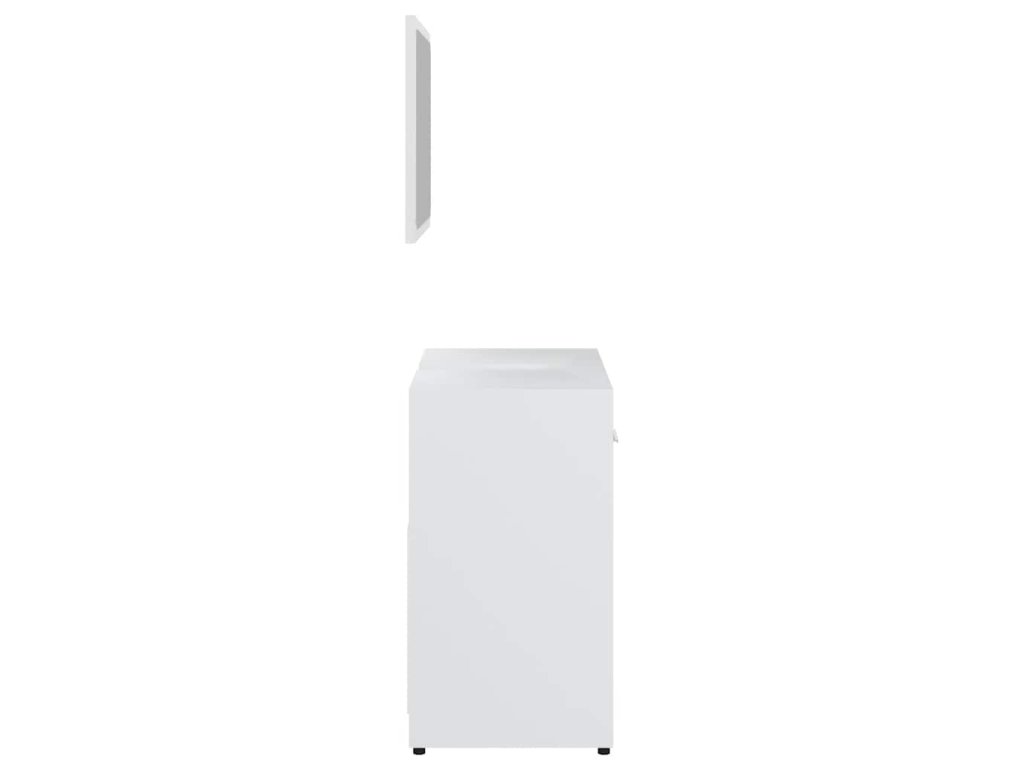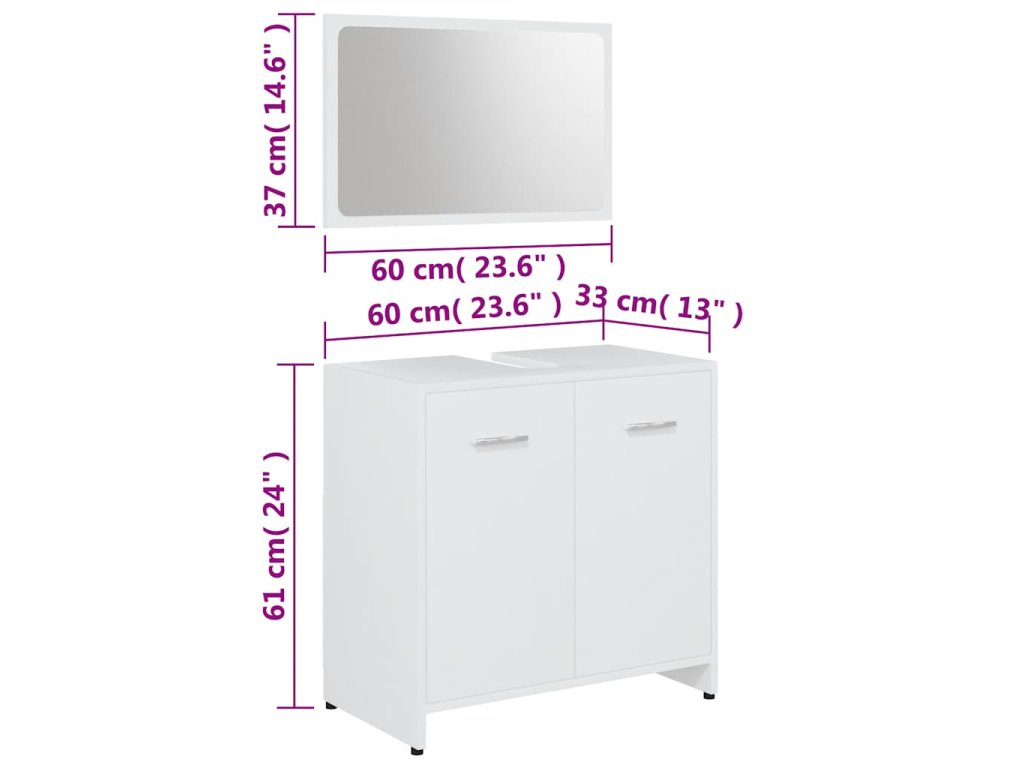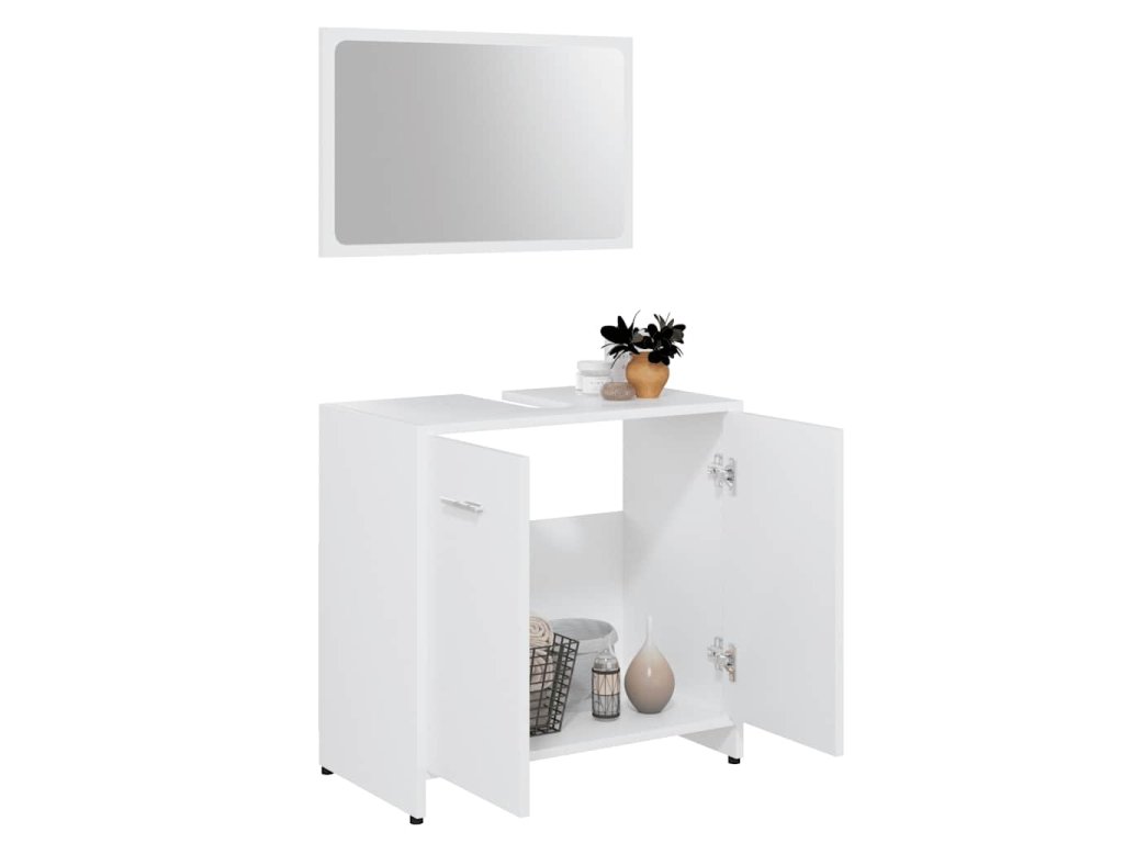 Táto súprava nábytku pozostáva zo zrkadla a skrinky a je vyrobená z trvácneho a stabilného kompozitného dreva. Elegantná skrinka má 1 priečinok a 2 dvierka, ktoré ponúkajú množstvo priestoru na odkladanie rôznych predmetov v kúpeľni. Na obidvoch dvierkach sa nachádza úchytka pre jednoduchšie otváranie a zatváranie. Zrkadlo dodá vášmu interiéru pôsobivý vzhľad. Súprava kúpeľňového nábytku sa dá ľahko očistiť navlhčenou handričkou.