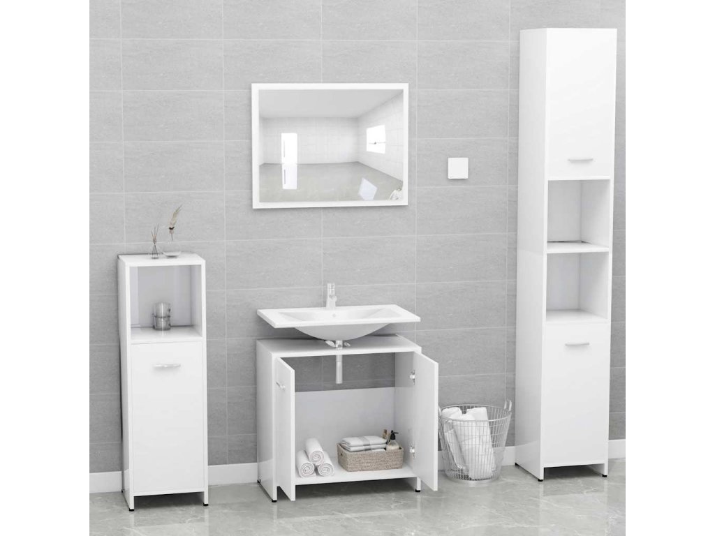 Táto štýlová súprava kúpeľňového nábytku vám umožní vytvoriť si ďalší úložný priestor, a tak bude kúpeľňa pôsobiť pekne a čisto. Vďaka čistým líniám a úhľadnému dizajnu sa bude dokonale hodiť do kúpeľne.