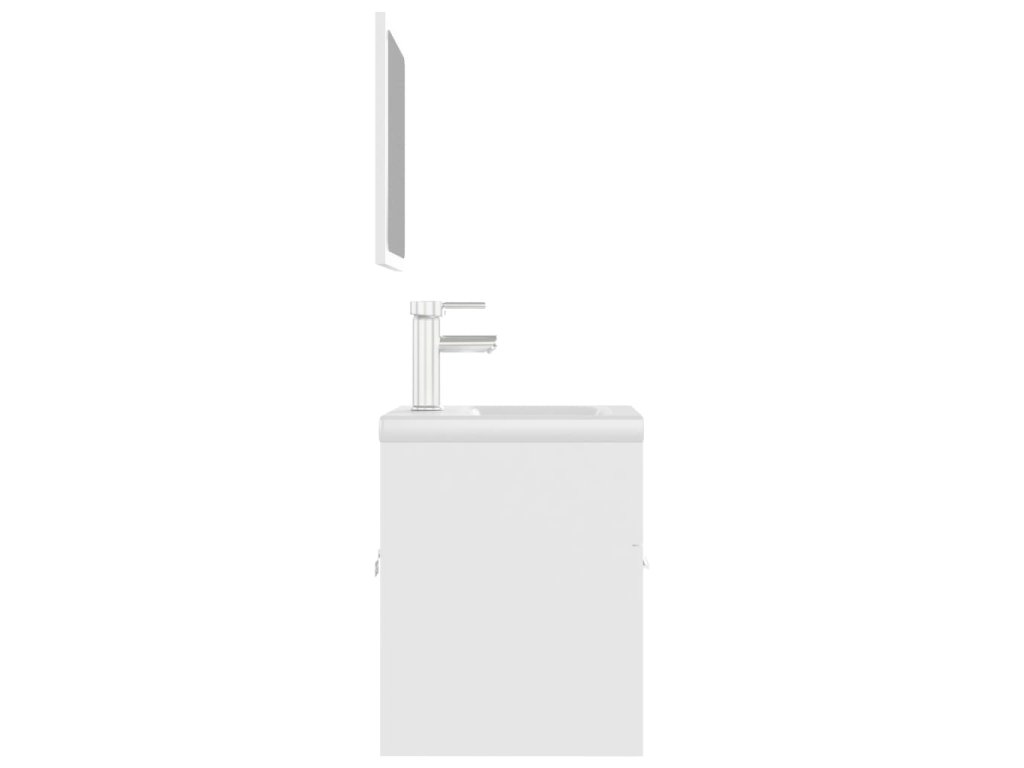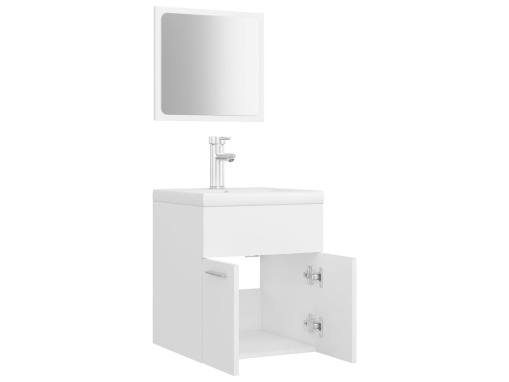 Táto štýlová súprava kúpeľňového nábytku, ktorá sa skladá z umývadlovej skrinky, vstavaného umývadla a zrkadla, sa bude so svojím výrazným a elegantným vzhľadom perfektne hodiť do vašej kúpeľne alebo umyvárne.