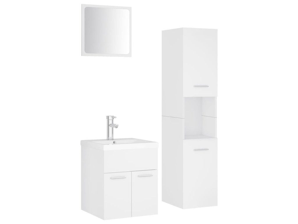 Sada nábytku pozostáva z umývadlovej skrinky, vysokej skrinky, vstavaného umývadla a zrkadla. Elegantná umývadlová skrinka má 1 priehradku a jej horná časť je ideálna na umiestnenie umývadla. Vysoká skrinka má celkovo 5 priehradiek a 2 dvierka, čo ponúka dostatok priestoru na uloženie predmetov vo vašej kúpeľni. Umývadlo je vyrobené z keramiky a môže slúžiť nielen ako nádoba na každodenné použitie, ale aj ako ozdoba vo vašom obývacom priestore. Vďaka modernému dizajnu sa toto umývadlo určite hodí do akéhokoľvek interiéru. Na odtekanie vody v prípade naplnenia je umývadlo vybavené prepadom. Zrkadlo tiež dodá vášmu interiéru krásny vzhľad. Táto kúpeľňová súprava sa navyše ľahko čistí vlhkou handričkou.
