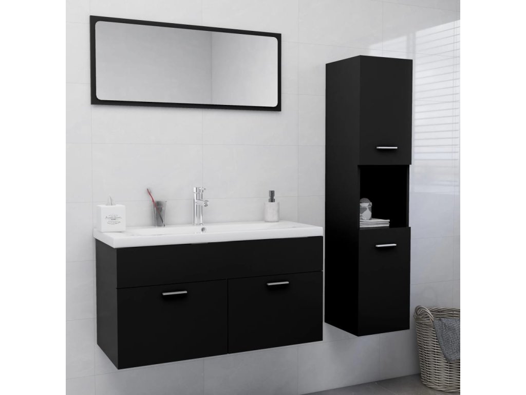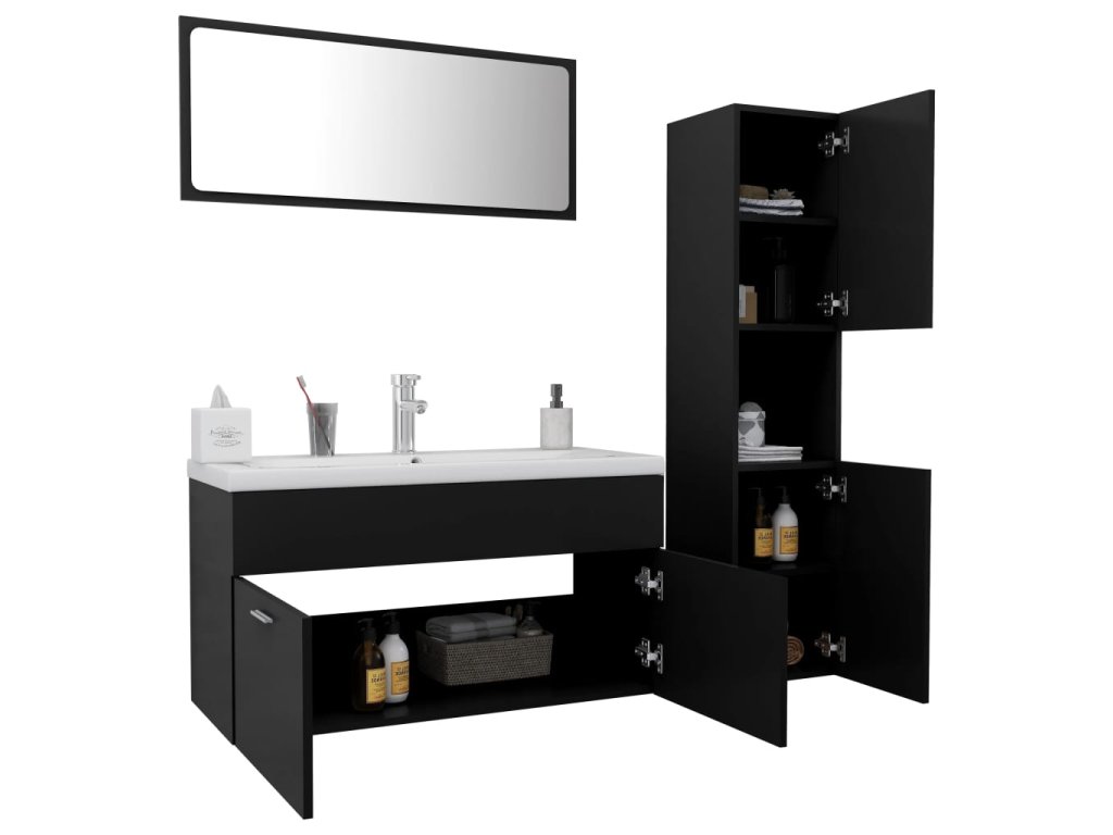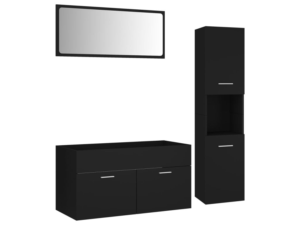 Súprava nábytku sa skladá z umývadlovej skrinky, vysokej skrinky a zrkadla. Elegantná umývadlová skrinka má 1 priehradku a jej vrchná časť je ideálna na umiestnenie drezu. Vysoká skrinka má celkom 5 priehradiek a 2 dvierka, ktoré ponúkajú dostatok priestoru na uloženie predmetov vo vašej kúpeľni. Zrkadlo tiež dodá vášmu interiéru vynikajúci vzhľad. Navyše sa táto kúpeľňová sada ľahko čistí vlhkou handričkou.