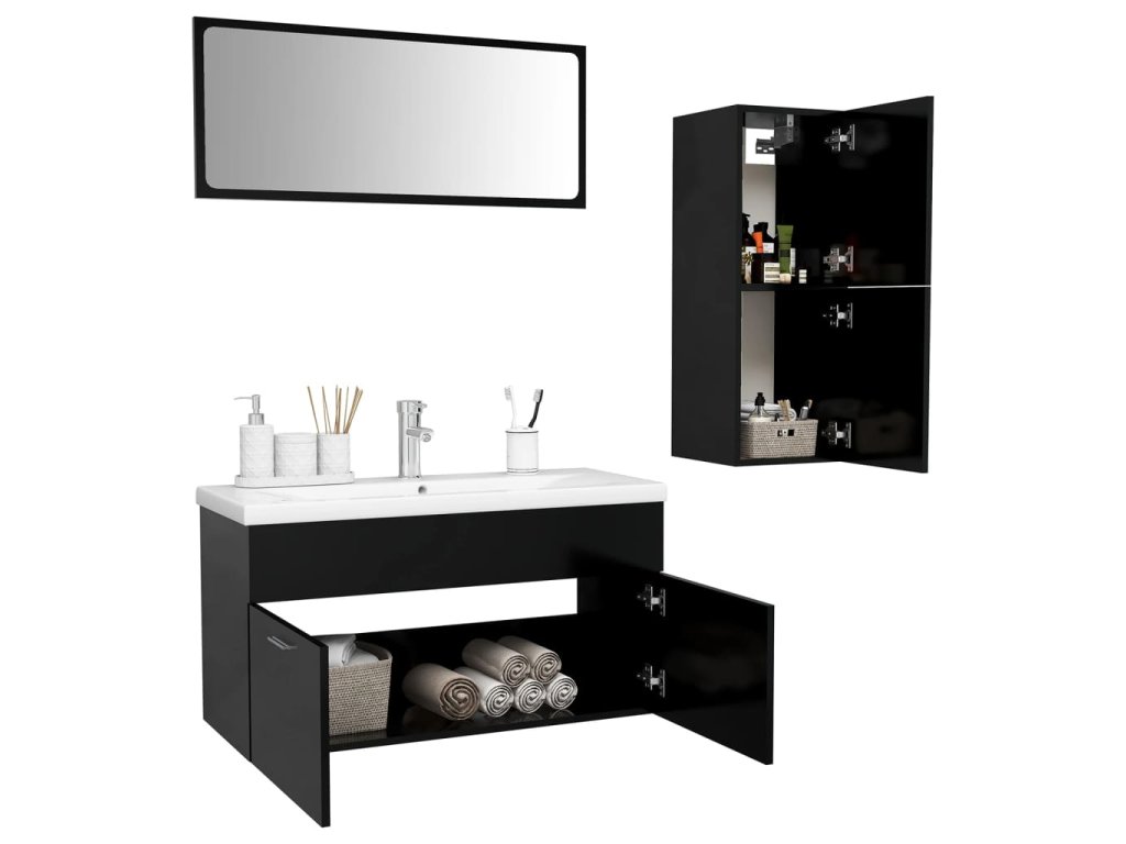 Súprava nábytku sa skladá z umývadlovej skrinky, nízkej skrinky a zrkadla. Elegantná umývadlová skrinka má 1 priehradku a jej vrchná časť je ideálna na umiestnenie drezu. Nízka skrinka má 2 priehradky, ktoré ponúkajú dostatok priestoru na uloženie predmetov vo vašej kúpeľni. Zrkadlo tiež dodá vášmu interiéru vynikajúci vzhľad. Navyše sa táto kúpeľňová sada ľahko čistí vlhkou handričkou.