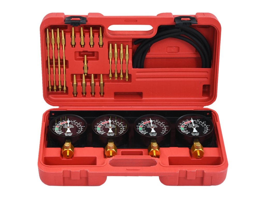 Táto súprava umožňuje synchronizovať hodnoty 4 karburátorov a tiež ich nastavovať. Každý merač má svoju individuálnu kontrolu tlmenia a kontrolu kalibrácie.