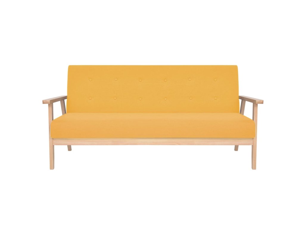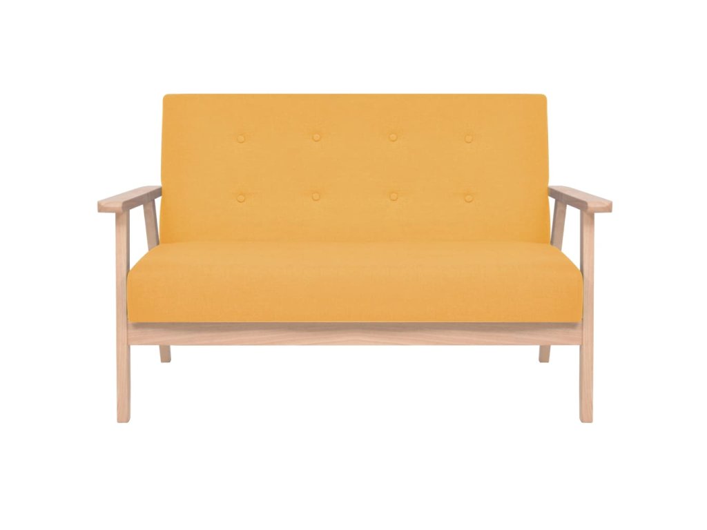 Súprava pohoviek je potiahnutá mäkkou polyesterovou látkou a vyčalúnená molitanom, a tak poskytuje optimálny komfort. Rám z dreveného masívu zabezpečuje stabilitu a trvácnosť. Montáž je naozaj jednoduchá.