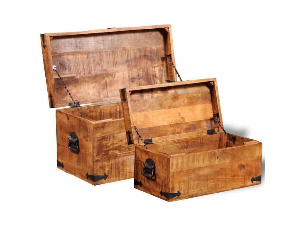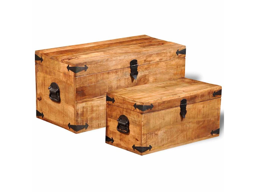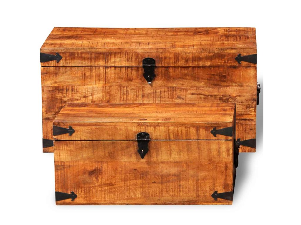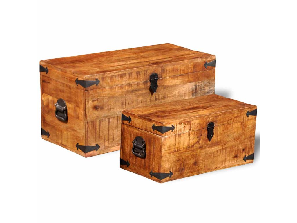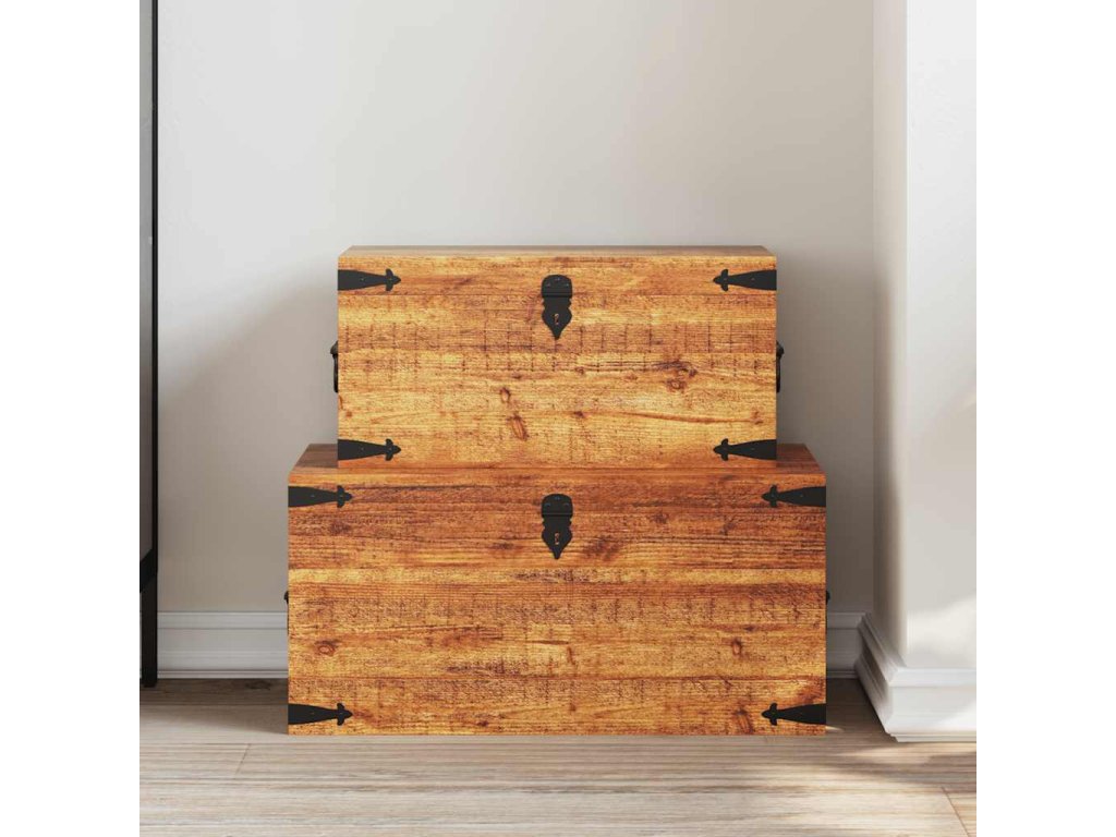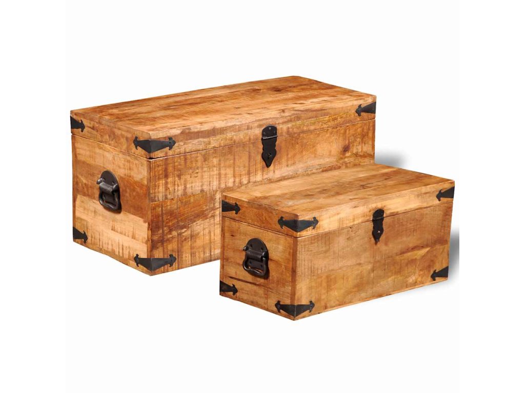 Táto súprava 2 skladovacích truhlíc zo surového mangového dreva predstavuje nadčasový doplnok do vašej domácnosti, ktorý poskytuje množstvo úložného priestoru, vďaka čomu budete mať vo svojich veciach vždy poriadok.