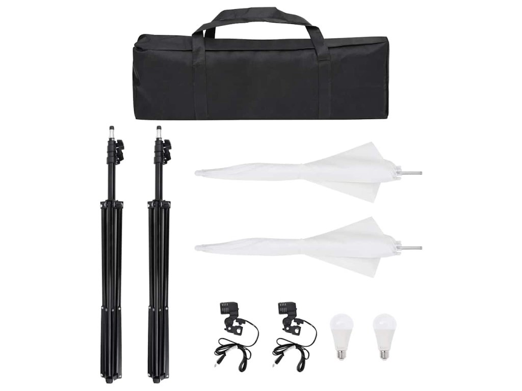 Táto súprava štúdiového osvetlenia pozostáva z 2 lámp s denným svetlom, dvoch statívov a dvoch dáždnikov. Je vhodná na fotografovanie aj natáčanie videí. Táto kompaktná súprava sa dá ľahko preniesť v praktickej taške.