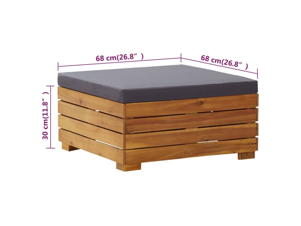 - Rozmery stola/opierky na nohy (bez vankúša): 68 x 68 x 30 cm (Š x H x V)