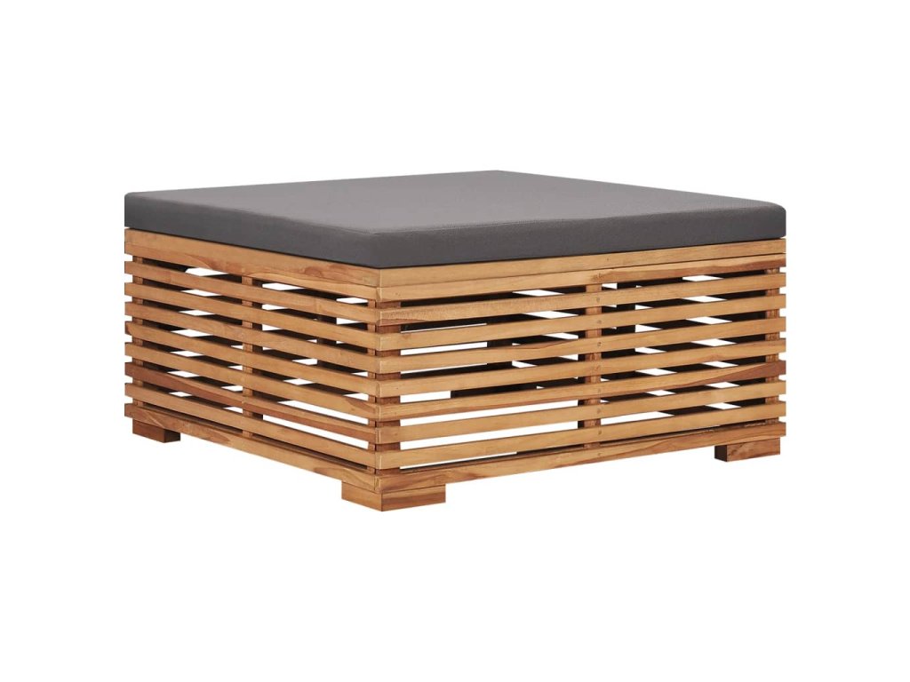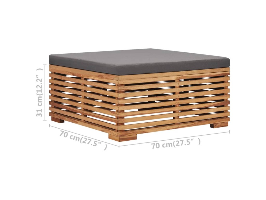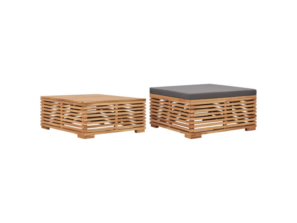 vidaXL Súprava záhradného stolíka a taburetky s tmavosivou podložkou tíkový masív