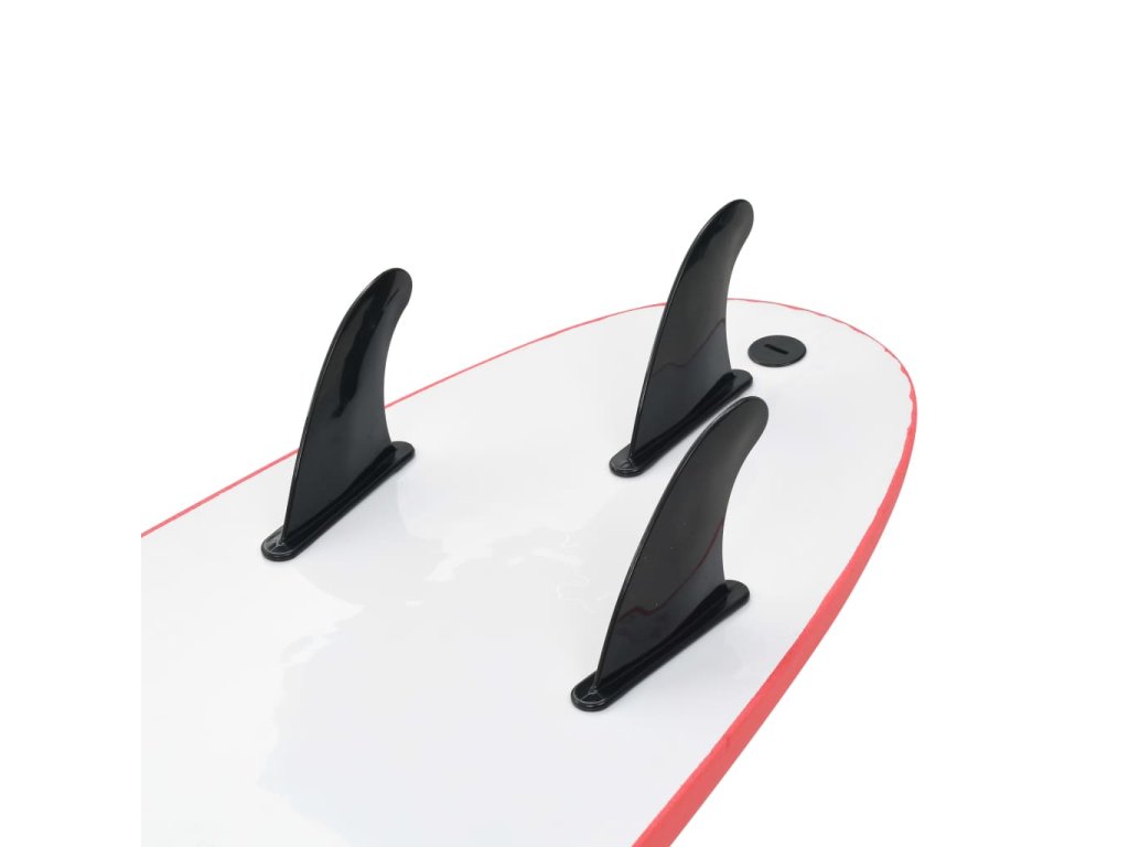 Hladká spodná časť zaistí, že sa na vode bude skvelo kĺzať. Súprava troch plutiev je vyrobená z pevného plastu a zaisťuje výborné ovládanie dosky na vlnách. Vysoko kvalitný popruh na členok je súčasťou balenia. Vďaka nemu surf nestratíte, ani keď z neho spadnete.