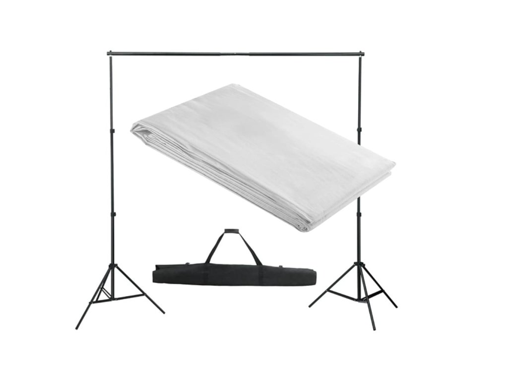 S týmto kompletným systémom na zavesenie fotopozadia sa budete môcť ako fotograf riadiť svojou fantáziou a vytvoriť množstvo zaujímavých fotiek. Môžete ho používať v štúdiu alebo v teréne. Systém je vyrobený z hliníka, je ľahký a dá sa rýchlo a jednoducho poskladať. Systém sa dodáva spolu s fotopozadím bielej farby, ktoré je vyrobené z bavlny.