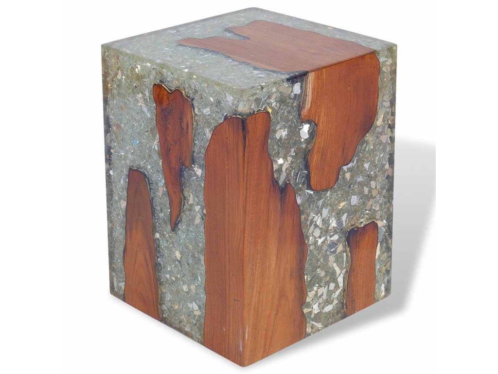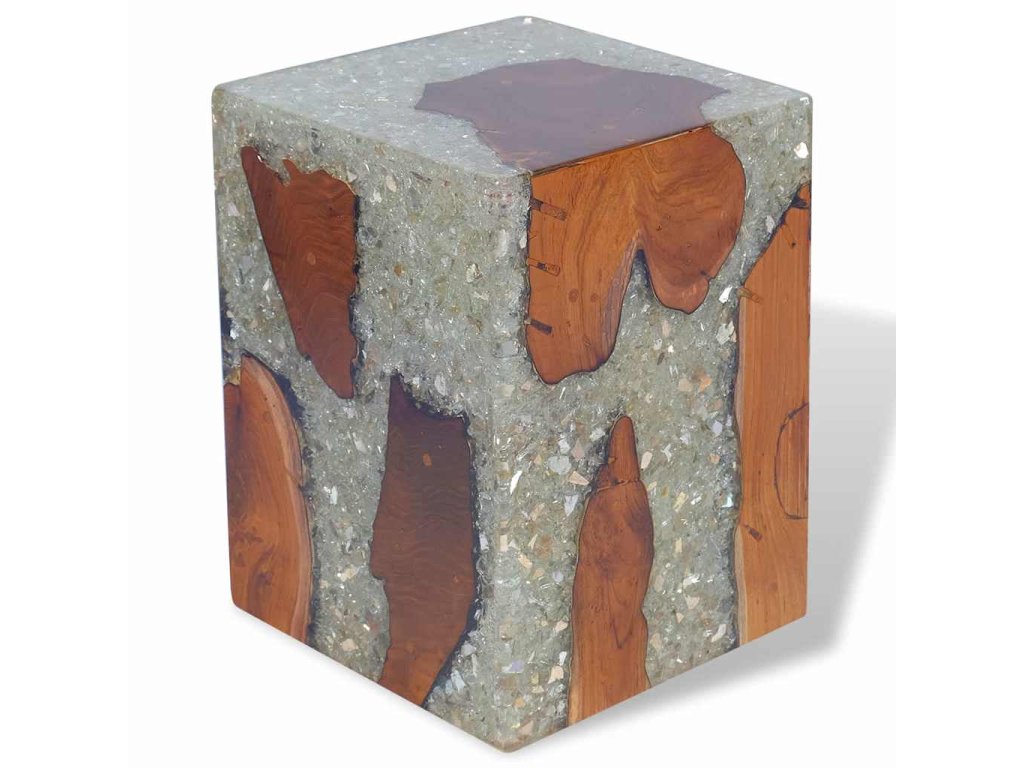 Táto jedinečná drevená taburetka je vyrobená z tíkového masívu s dekoráciou z priehľadnej živice a vyžaruje z nej rustikálny šarm, a tak zaručene upúta nejeden pohľad. Taburetku môžete využívať aj ako podnožku, príručný stolík a podobne.