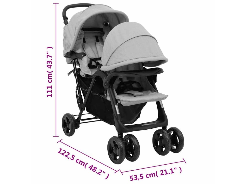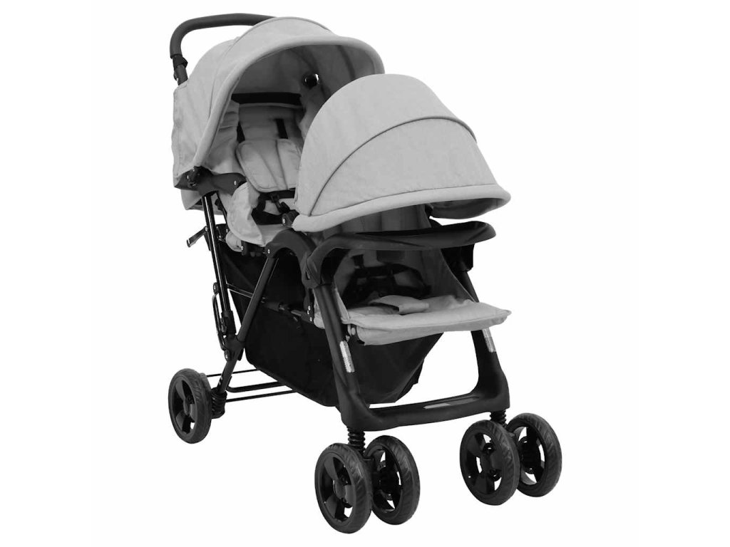 Tento kočík pre dvojičky je vyrobený z ocele a ľanu, vďaka čomu je pevný a pohodlný. Nastaviteľná strieška je navrhnutá tak, aby chránila dieťa pred UV žiarením. V spodnej časti je úložný kôš na uloženie hračiek, jedla, prikrývok atď. Kočík sa dá navyše ľahko a kompaktne zložiť, aby sa ušetrilo miesto pri skladovaní alebo preprave.