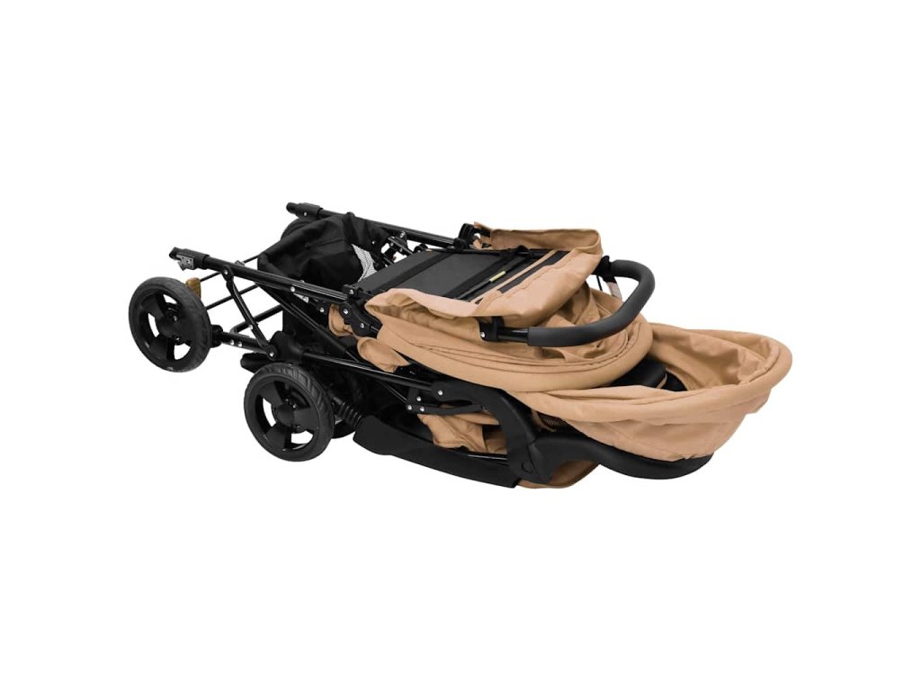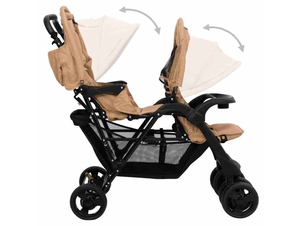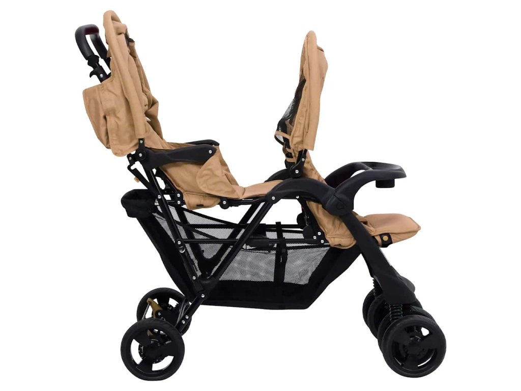 Tento kočík pre dvojičky je vyrobený z ocele a ľanu, vďaka čomu je pevný a pohodlný. Nastaviteľná strieška je navrhnutá tak, aby chránila dieťa pred UV žiarením. V spodnej časti je úložný kôš na uloženie hračiek, jedla, prikrývok atď. Kočík sa dá navyše ľahko a kompaktne zložiť, aby sa ušetrilo miesto pri skladovaní alebo preprave.