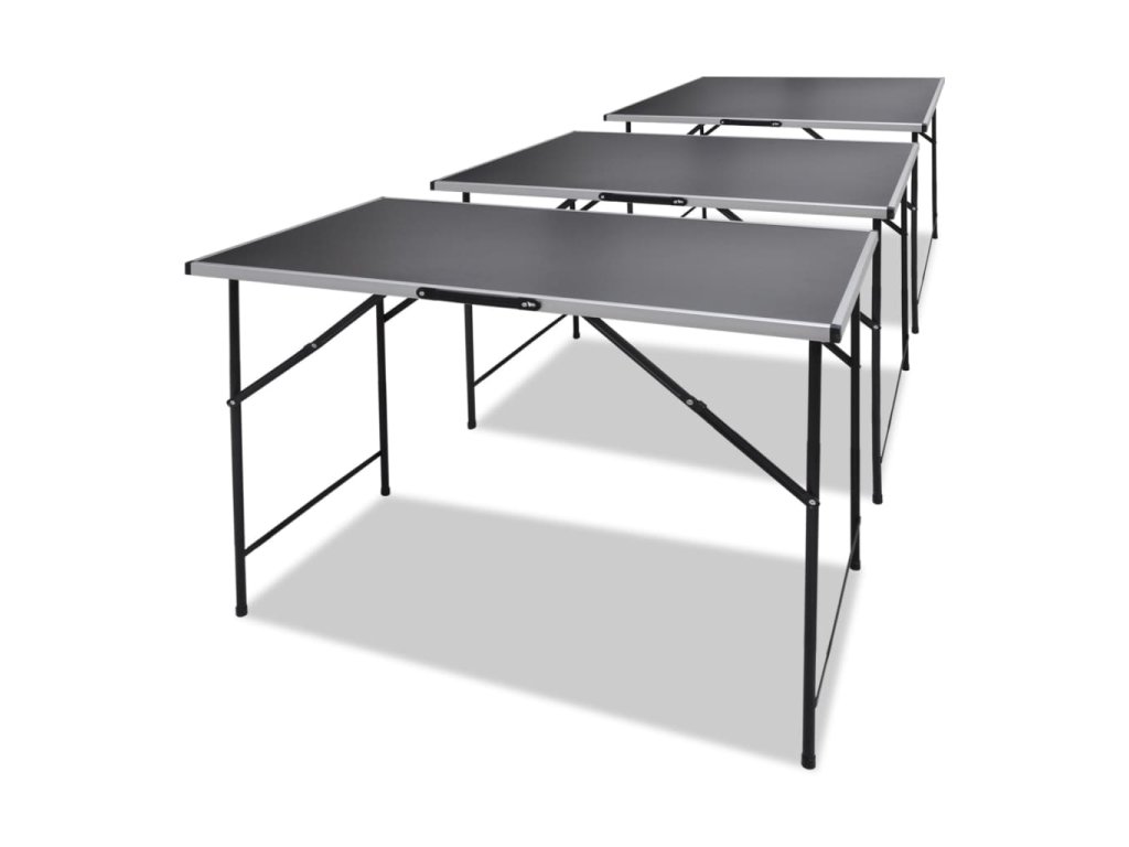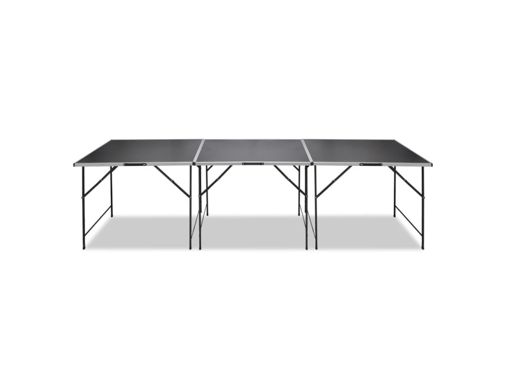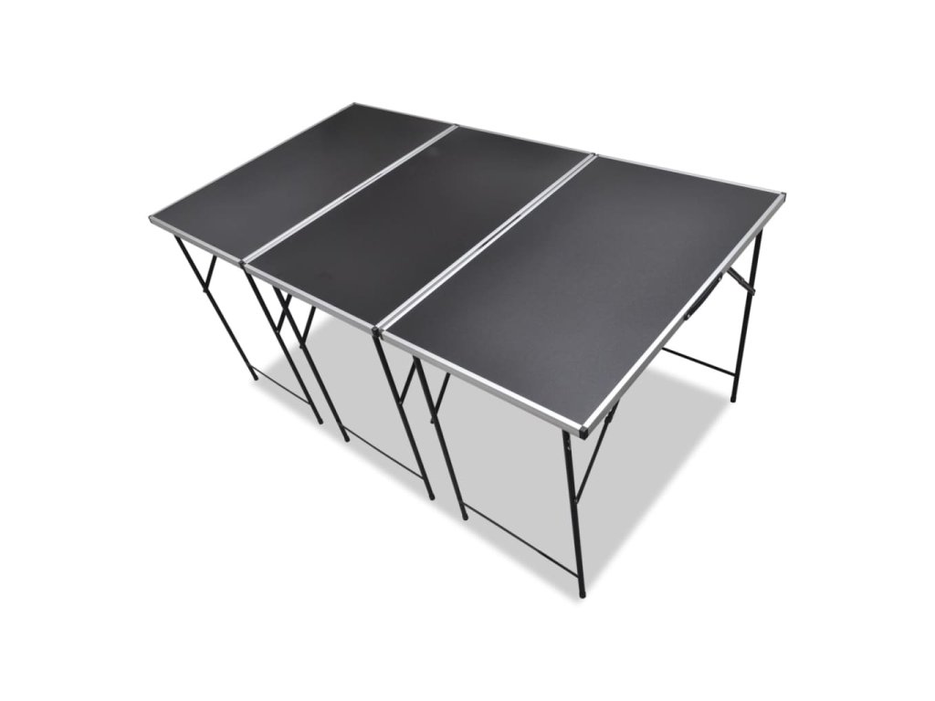 Každý z 3 tapetovacích stolov má rám z pevného a ľahkého hliníka a čiernu dosku z MDF, ktorá sa ľahko čistí. Stoly stoja na pevných železných nohách, vďaka čomu je táto súprava naozaj pevná a stabilná. Tieto 3 stoly sa dajú k sebe pripevniť pomocou háčikov. Všetky 3 stoly sa dajú poskladať, aby ste ich mohli bez problémov preniesť a odložiť, keď sa nepoužívajú.