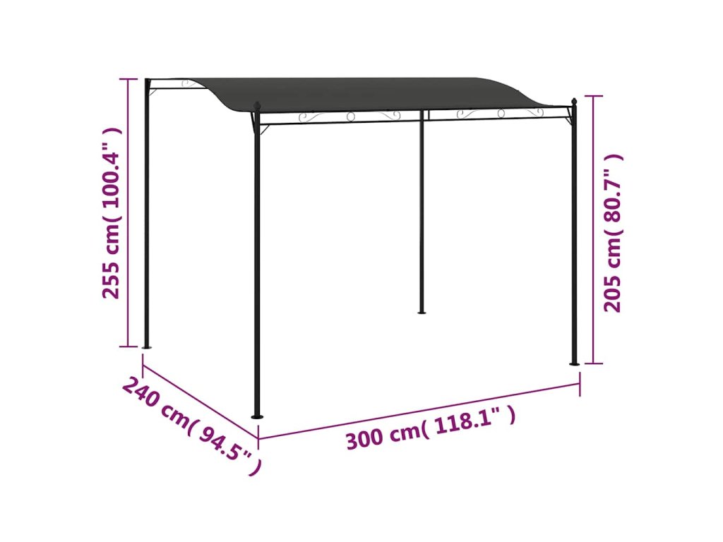 Altánok pozostáva z pevnej oceľovej konštrukcie a polyesterového baldachýnu. Dá sa veľmi jednoducho poskladať.