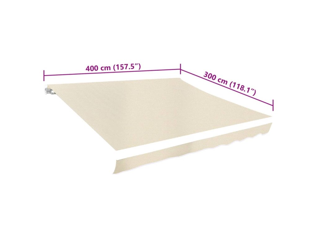 Poznámka: Tieniaca plachta pozostáva z 1 hlavného látkového dielu a 1 predného volánika. Rám nie je súčasťou balenia. Ide o kvalitnú tkaninu, ktorá poslúži ako náhradný diel na vašu markízu.
