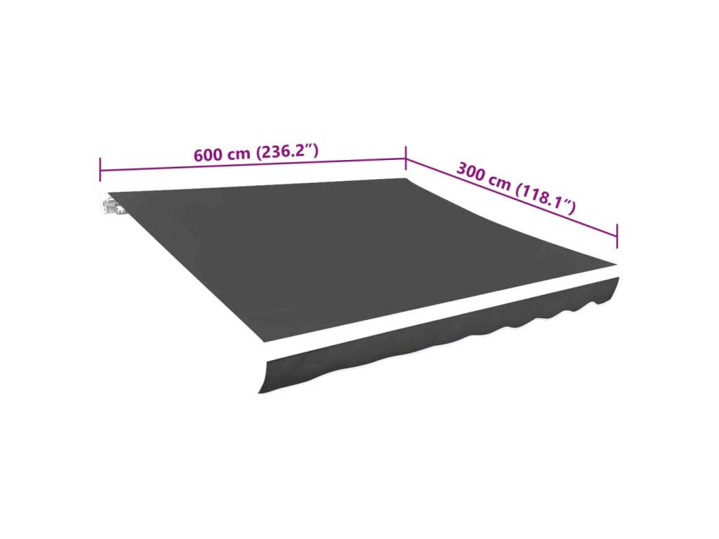 Poznámka: Tieniaca plachta pozostáva z 1 hlavného látkového dielu a 1 predného volánika. Rám nie je súčasťou balenia. Ide o vysokokvalitnú tkaninu, ktorá poslúži ako náhradný diel na vašu markízu.