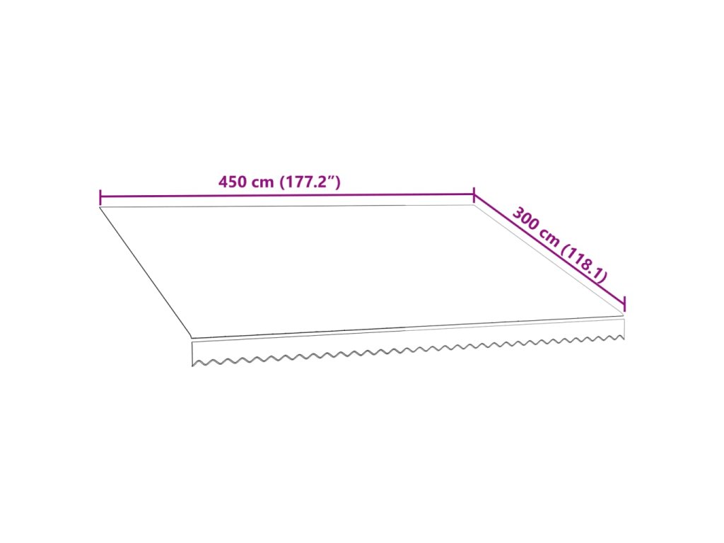 Poznámka: Tieniaca plachta pozostáva z 1 hlavného látkového dielu a 1 predného volánika. Rám nie je súčasťou balenia. Ide o kvalitnú tkaninu, ktorá poslúži ako náhradný diel na vašu markízu.