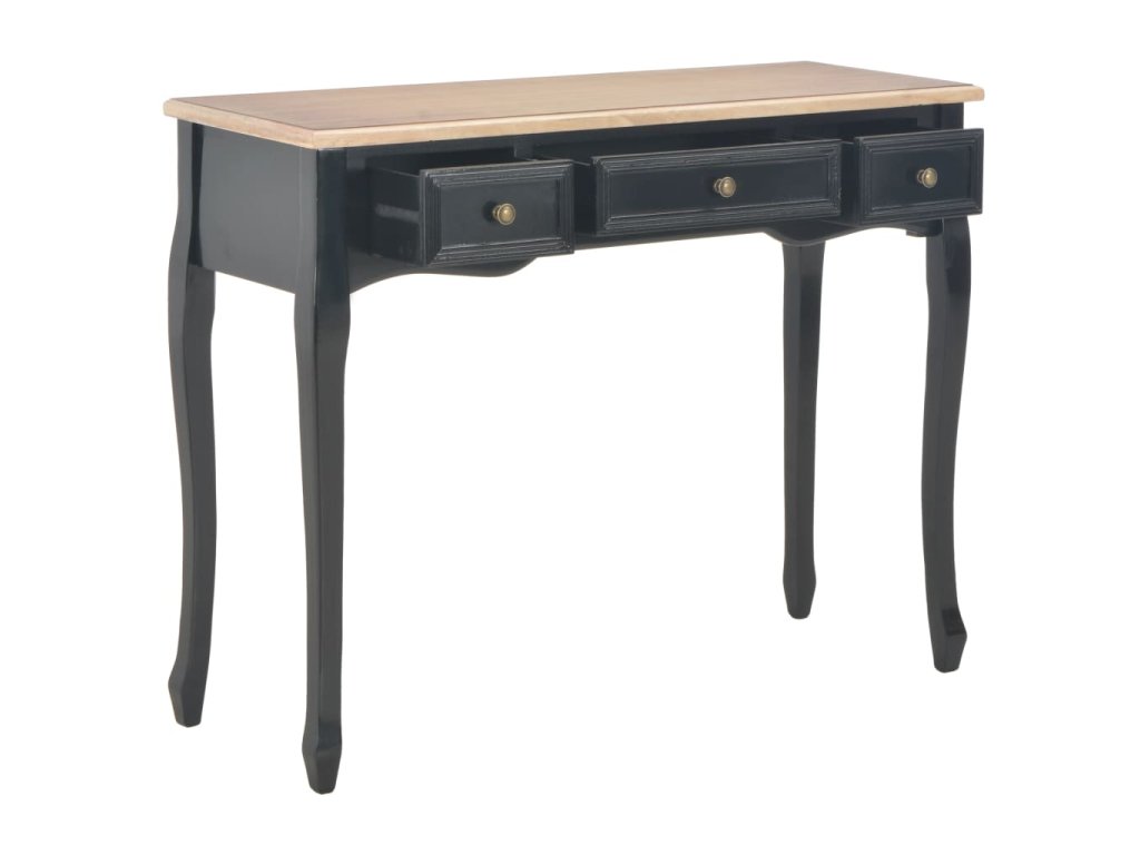 Stolík stelesňuje kombináciu excelentného remeselného spracovania a vynikajúcej funkčnosti. Konzolový stolík má kompaktný dizajn, a preto nezaberá veľa miesta a bude sa hodiť aj do menších miestností. Tri zásuvky, ktoré sa ľahko otvárajú, vám poskytnú dodatočné miesto na odkladanie dekorácií, kozmetiky či iných osobných vecí.
