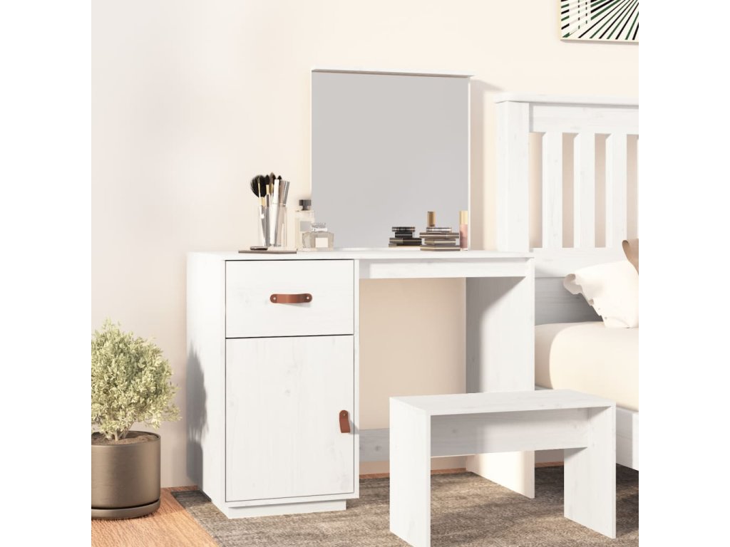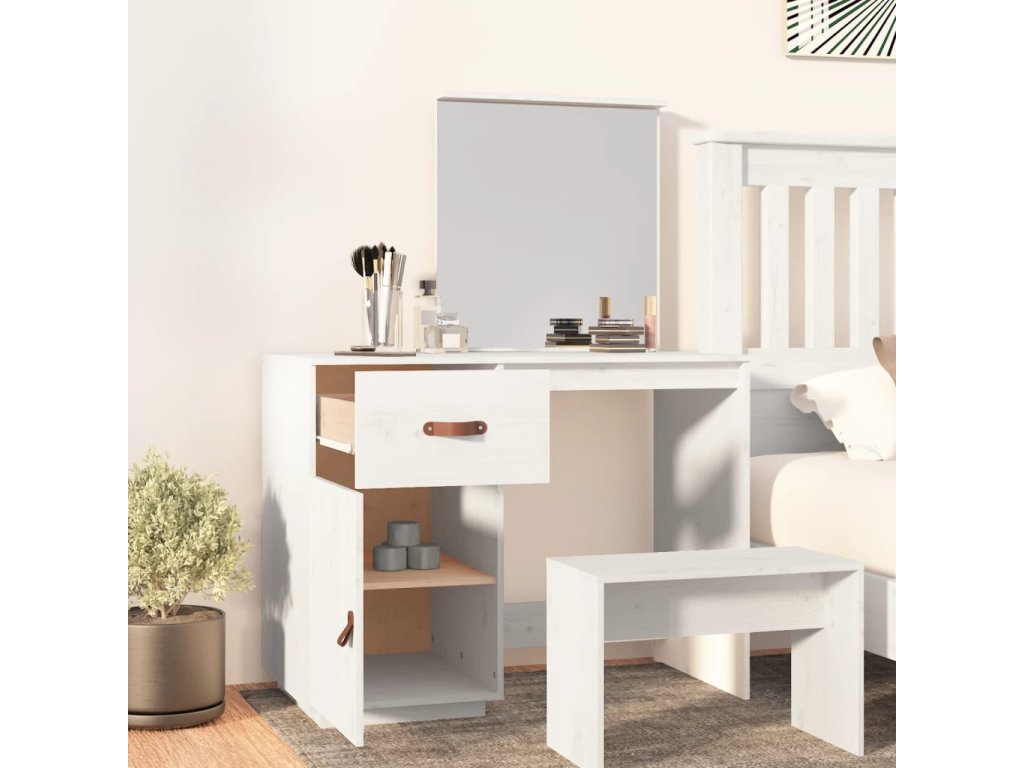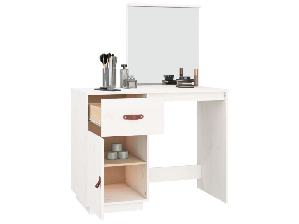 - Praktické dvierka: Chráňte svoje veci pred prachom tým, že ich schováte za dvierka tohto kozmetického stolíka.