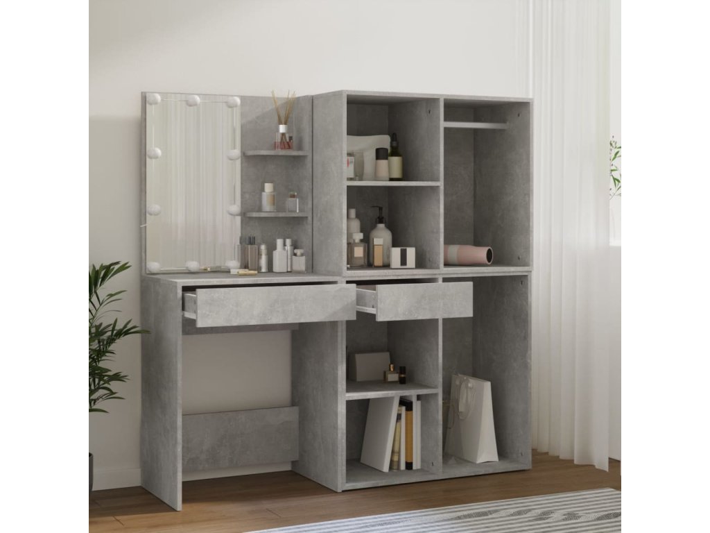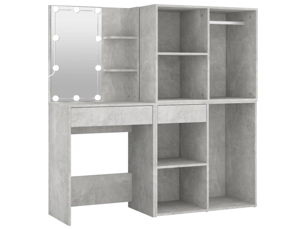 - LED svetlo: Kozmetický stolík so skrinkami má aj LED žiarovky s USB, na ktorých sa dajú jednoducho prepínať režimy z teplej farby svetla až po studenú bielu. Dodané LED žiarovky okolo zrkadla osvetlia aj vašu krásu.