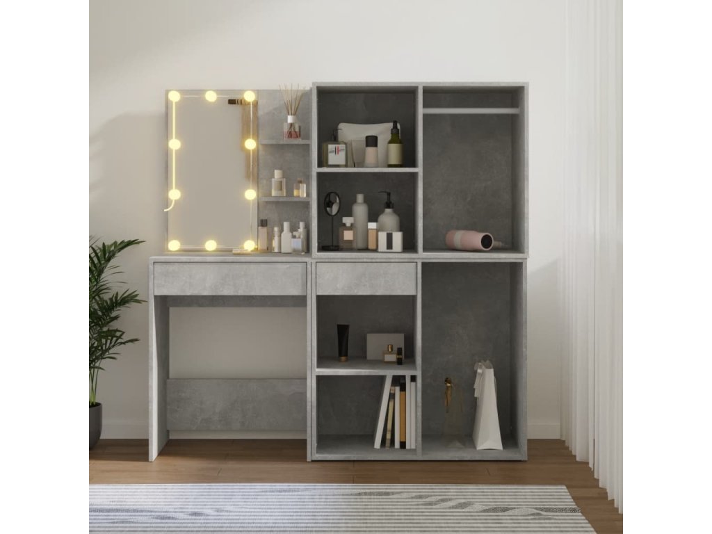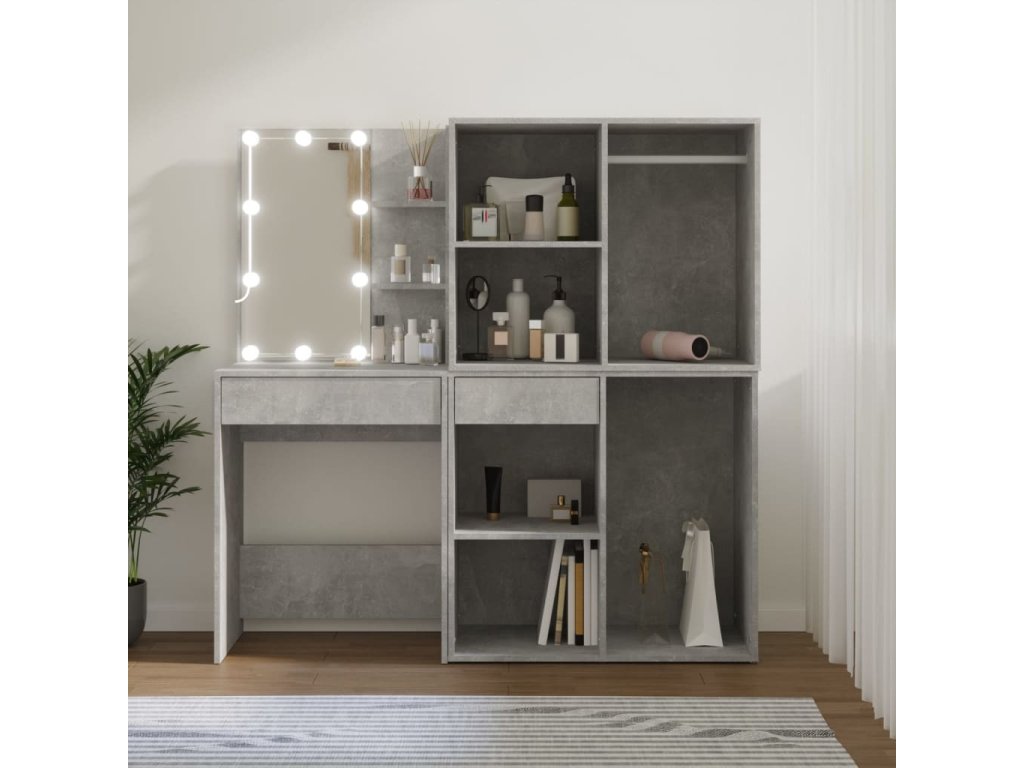 - Odolný materiál: LED toaletný stolík so skrinkami je vyrobený zo spracovaného dreva. Spracované drevo je mimoriadne kvalitné s hladkým povrchom a vyznačuje sa pevnosťou, stabilitou a odolnosťou proti vlhkosti.