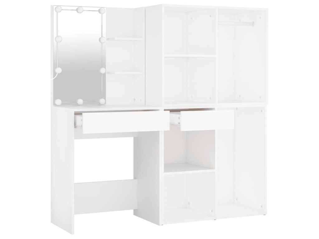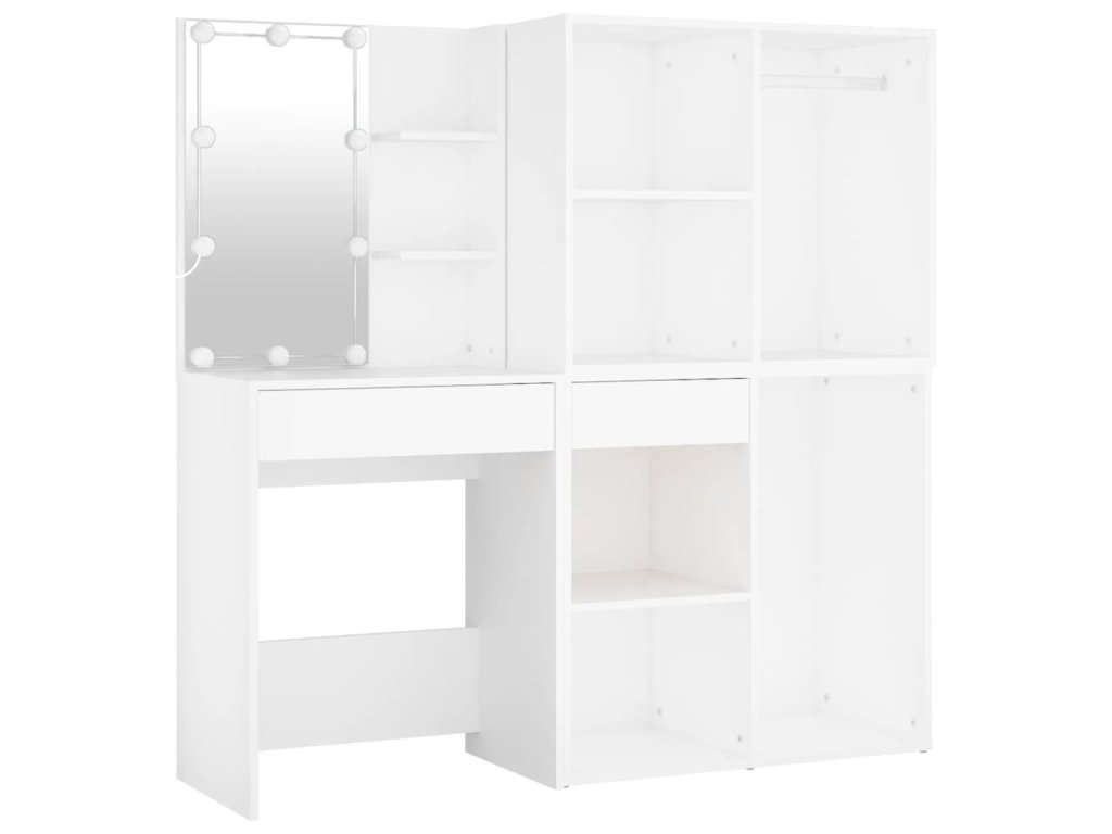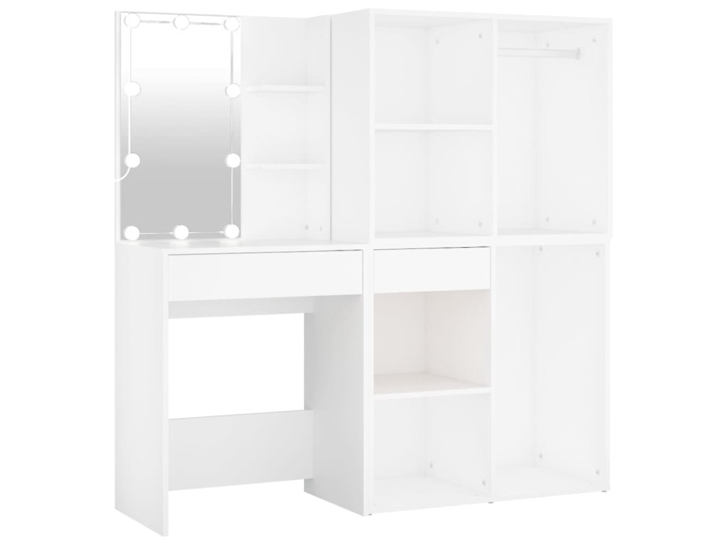 - LED svetlo: Kozmetický stolík so skrinkami má aj LED žiarovky s USB, na ktorých sa dajú jednoducho prepínať režimy z teplej farby svetla až po studenú bielu. Dodané LED žiarovky okolo zrkadla osvetlia aj vašu krásu.