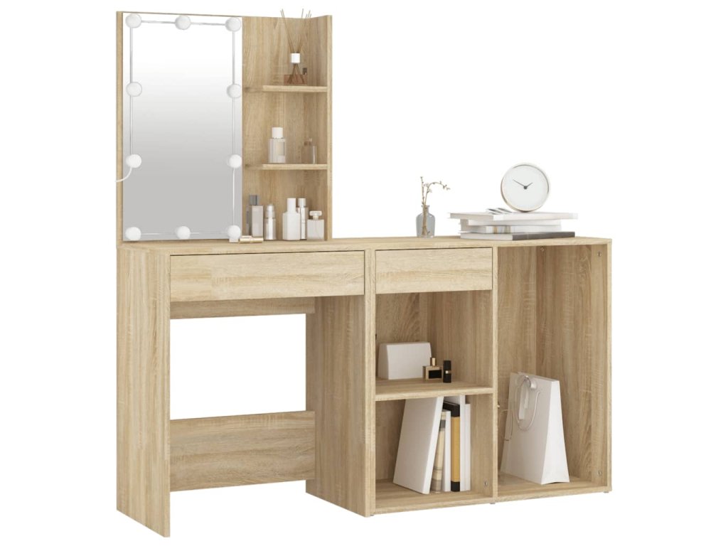 - Odolný materiál: LED toaletný stolík so skrinkou je vyrobený zo spracovaného dreva. Spracované drevo je mimoriadne kvalitné s hladkým povrchom a vyznačuje sa pevnosťou, stabilitou a odolnosťou proti vlhkosti.