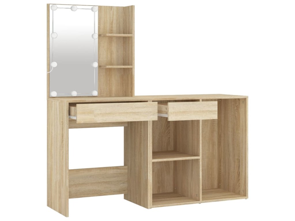 - LED svetlo: Kozmetický stolík so skrinkou má aj LED žiarovky s USB, na ktorých sa dajú jednoducho prepínať režimy z teplej farby svetla až po studenú bielu. Dodané LED žiarovky okolo zrkadla osvetlia aj vašu krásu.