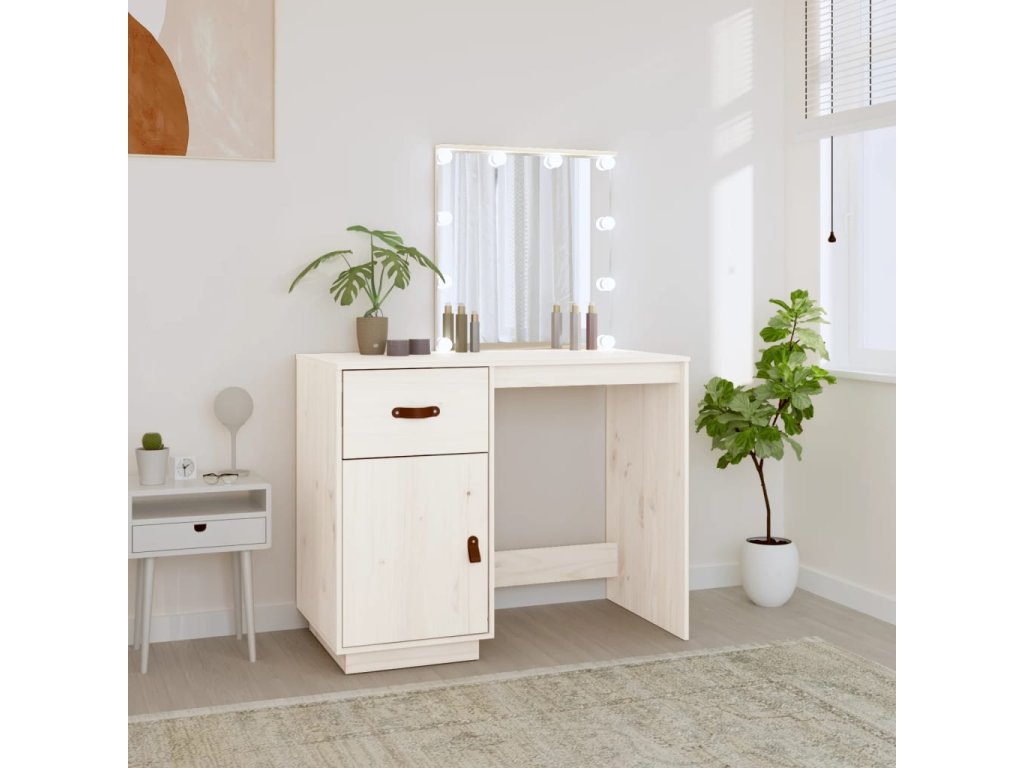 - Praktické dvierka: Chráňte svoje veci pred prachom tým, že ich schováte za dvierka skrinky na tomto make-up kozmetickom stolíku.