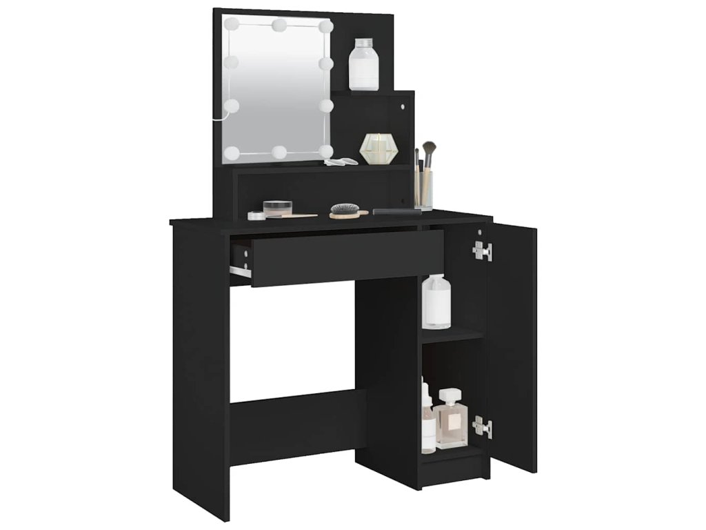 - Dostatok úložného priestoru: Tento kozmetický stolík má na stole otvorené police, zásuvku a bočnú skrinku, čo poskytuje dostatok úložného priestoru, aby ste mali dôležité veci dobre usporiadané a na dosah ruky.