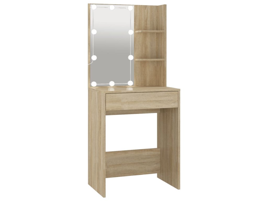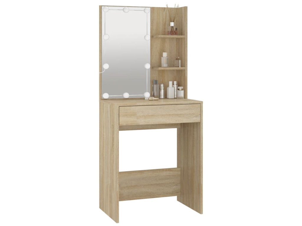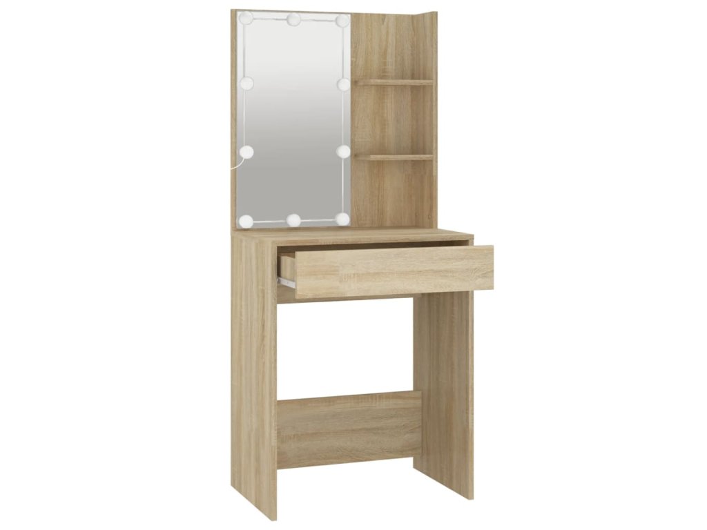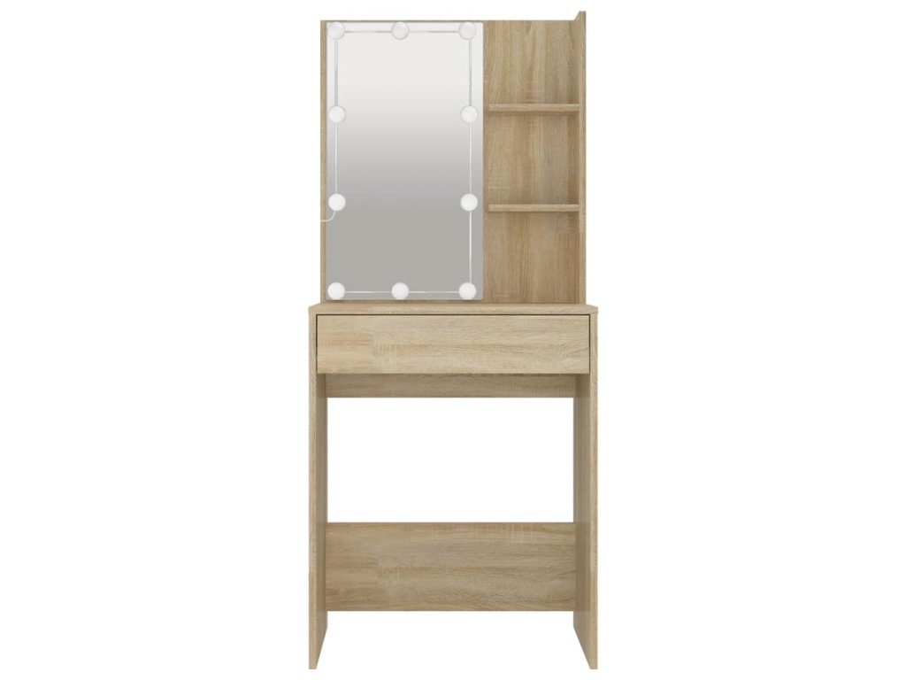 - LED svetlo: Kozmetický stolík má aj LED žiarovky s USB, na ktorých sa dajú jednoducho prepínať režimy z teplej farby svetla až po studenú bielu. Dodané LED žiarovky okolo zrkadla osvetlia aj vašu krásu.
